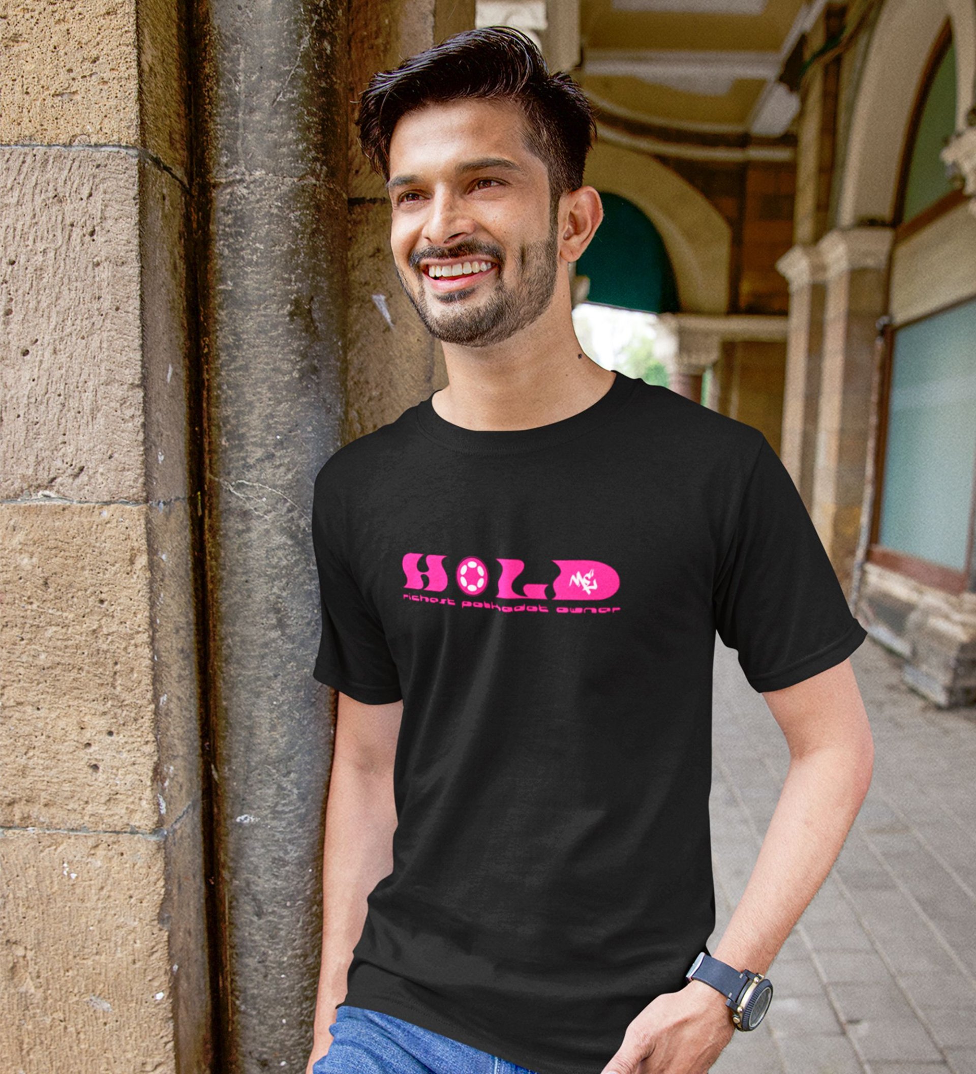Hold Me Wings Black Round Neck Cotton Half Sleeved Mens TShirt with Printed Graphics