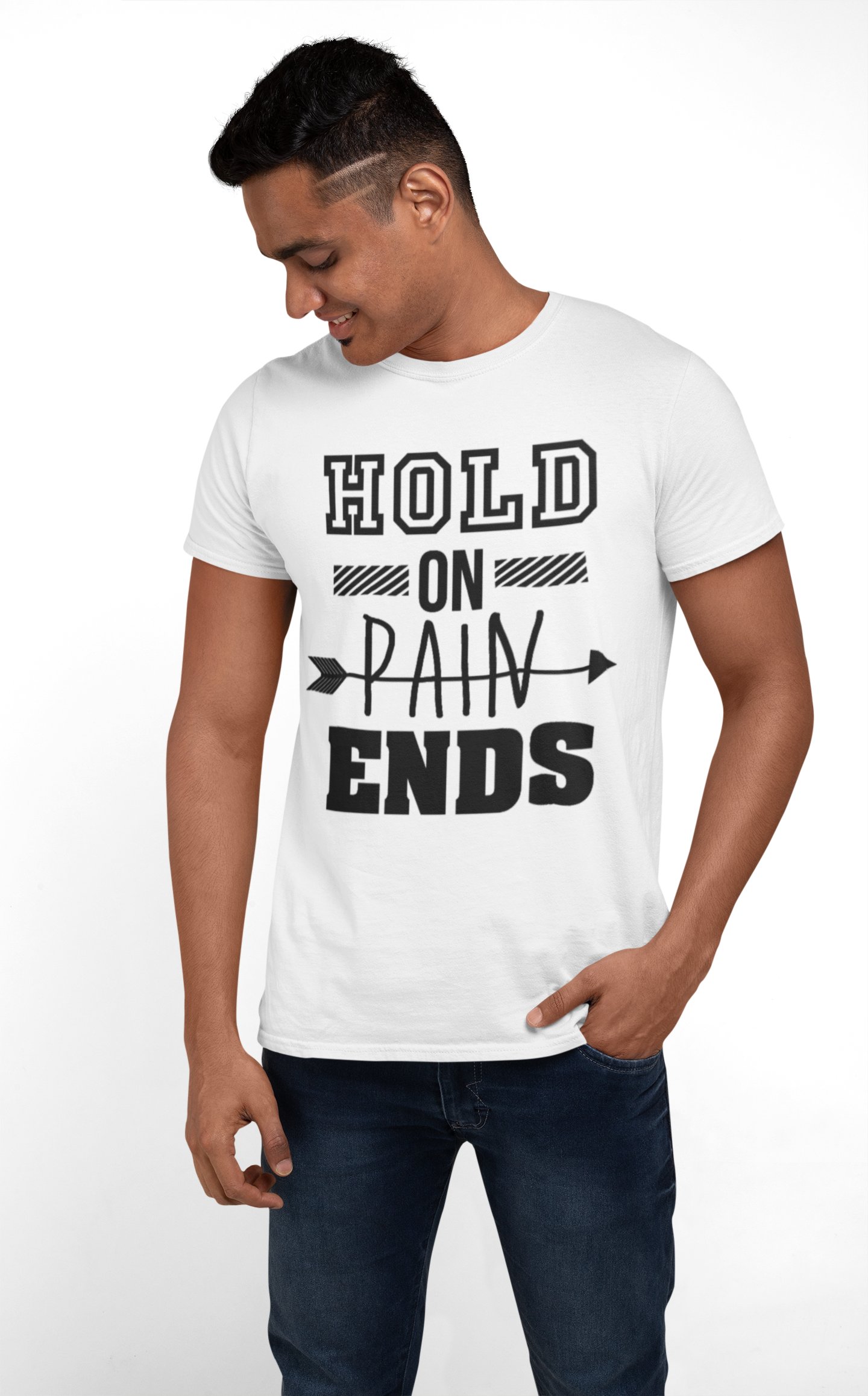 Hold on pain ends - White - printed T-shirts - Men's stylish clothing - Cool tees for boys