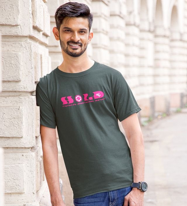 Hold! Wings Green Round Neck Cotton Half Sleeved Men's T-Shirt with Printed Graphics