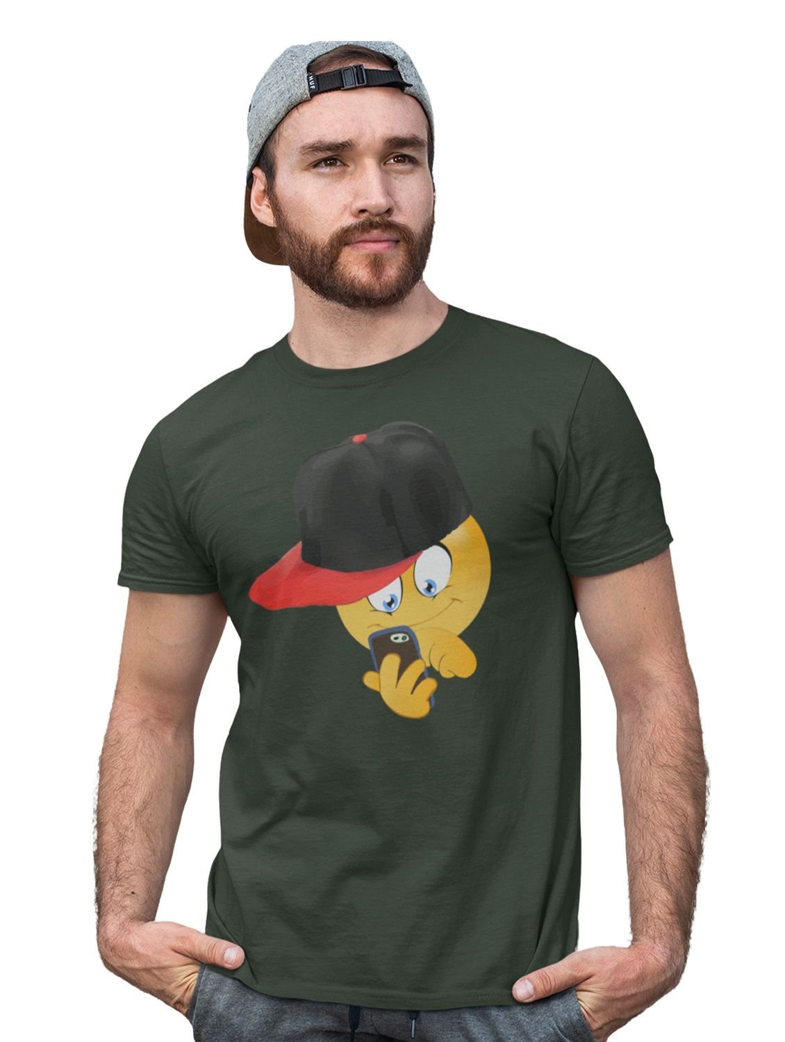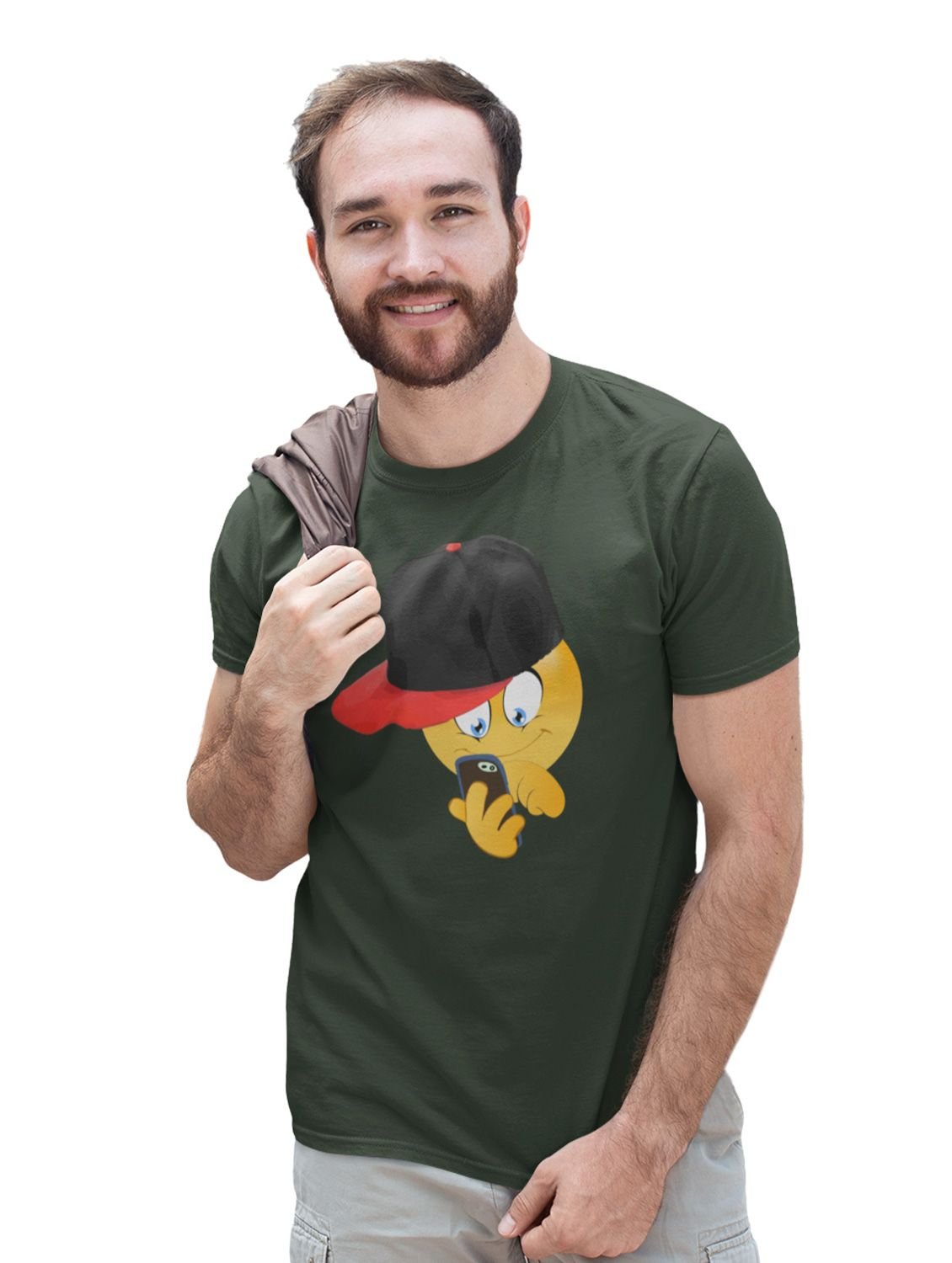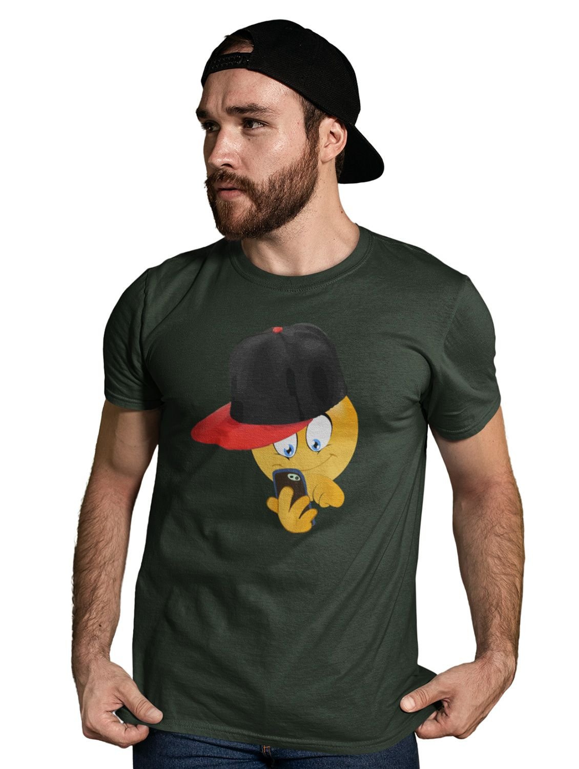 Holding a Mobile Emoji T-shirt (Green) - Clothes for Emoji Lovers - Suitable for Fun Events - Foremost Gifting Material for Your Friends and Close Ones