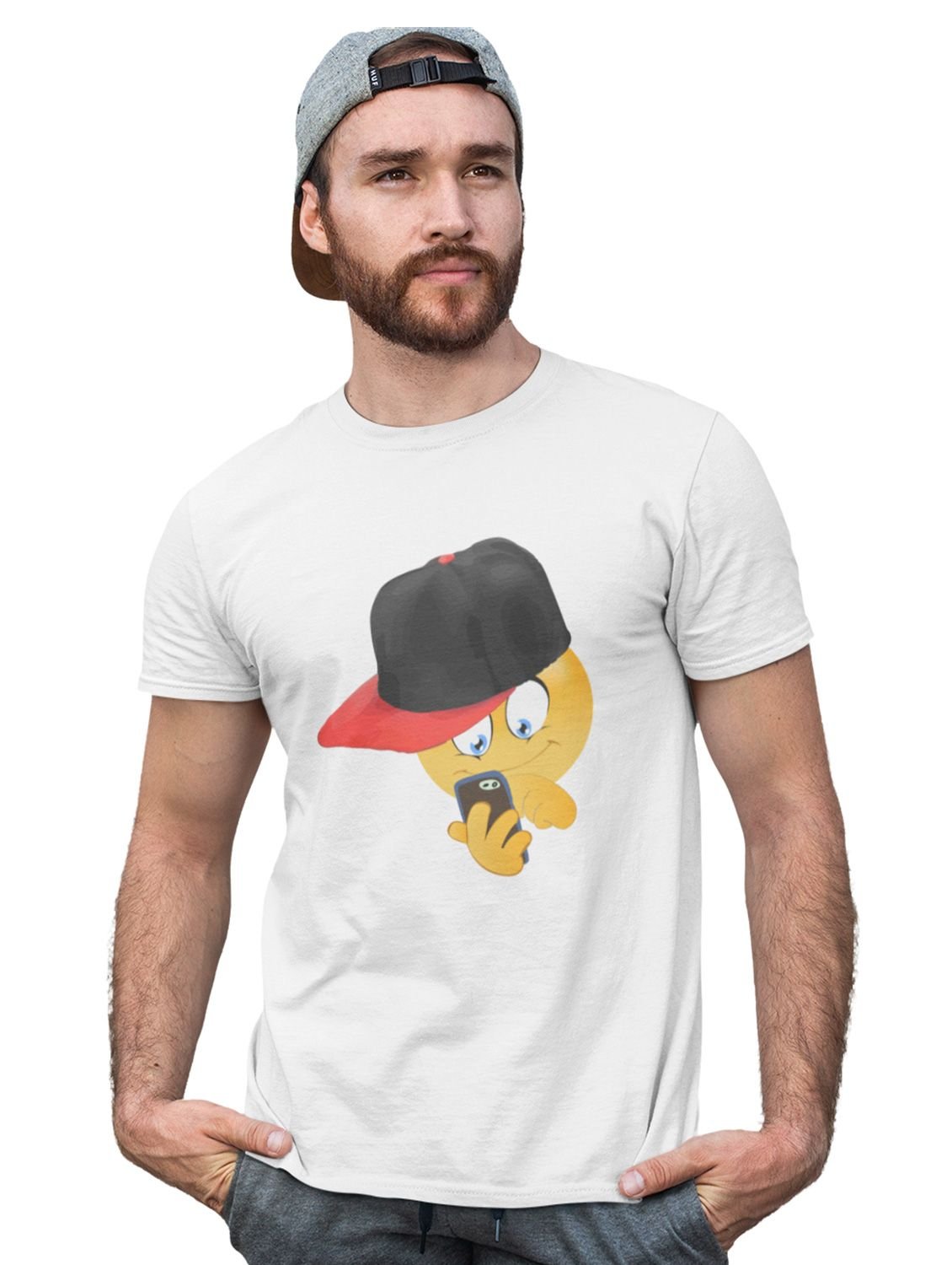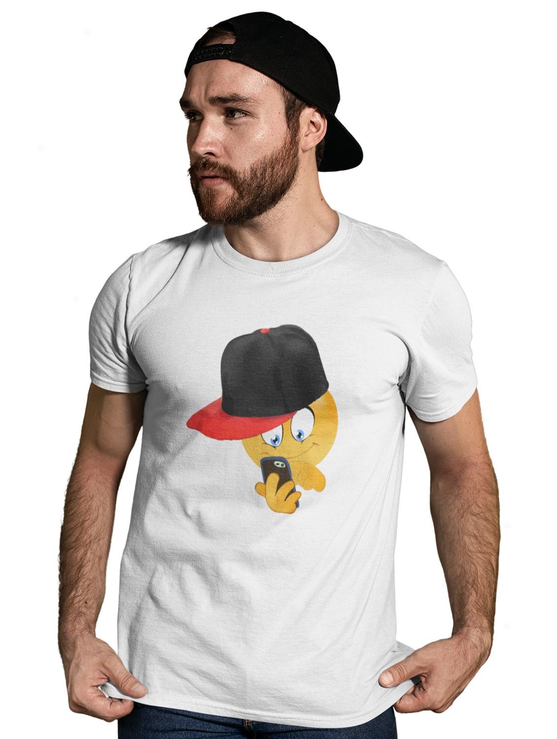 Holding a Mobile Emoji T-shirt (White) - Clothes for Emoji Lovers -Foremost Gifting Material for Your Friends and Close Ones