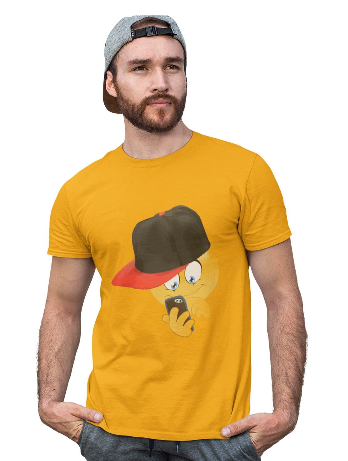 Holding a Mobile Emoji T-shirt (Yellow) - Clothes for Emoji Lovers - Suitable for Fun Events - Foremost Gifting Material for Your Friends and Close Ones