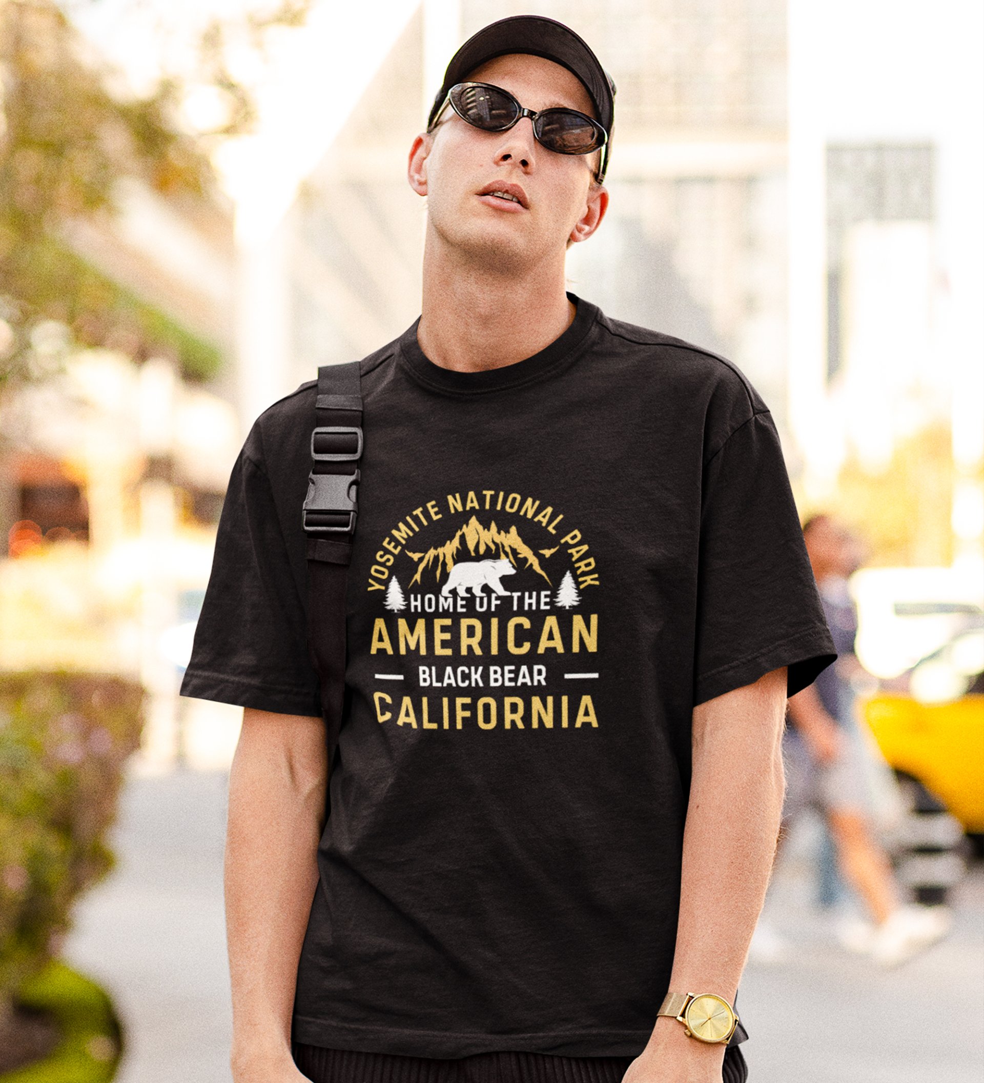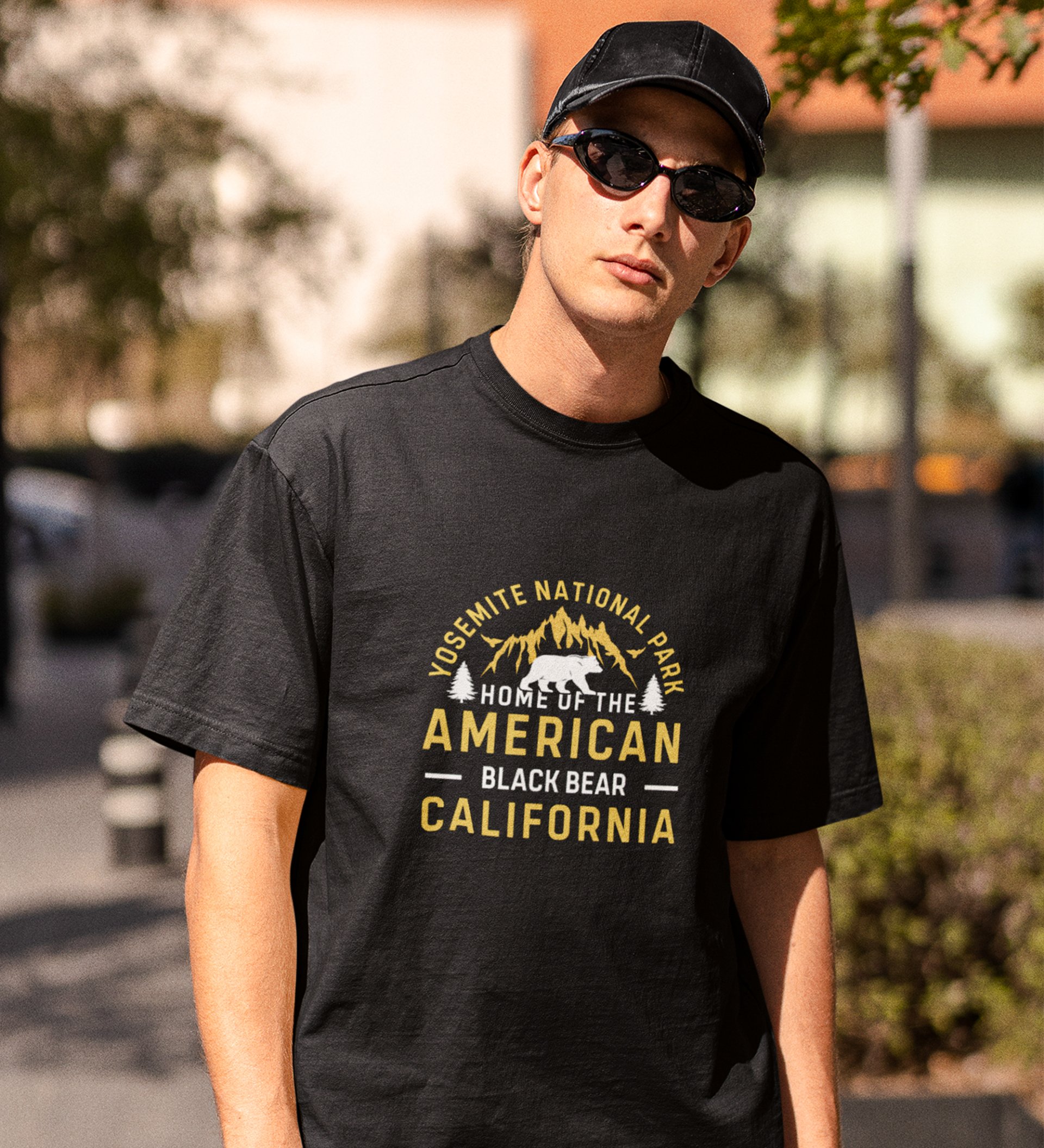 JD.TRENDS The Black Bear Black Round Neck Cotton Half Sleeved Men's T-Shirt with Printed Graphics