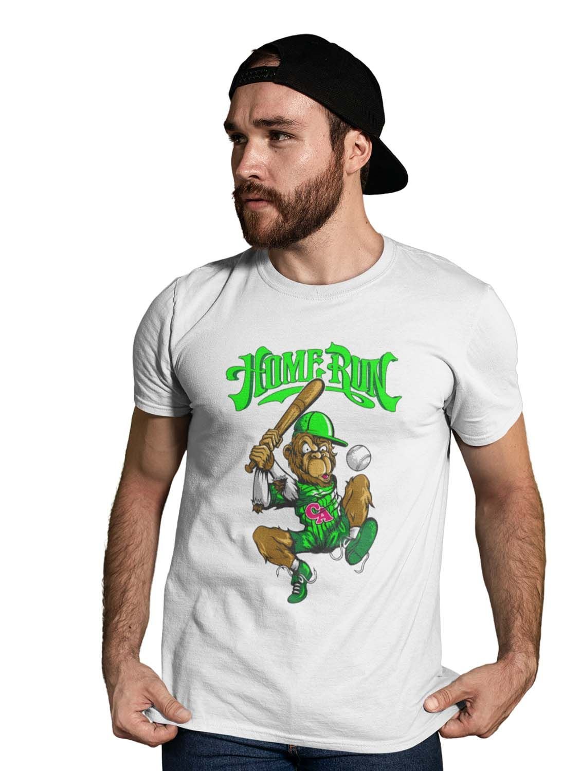 Baseball Monkey White Round Neck Cotton Half Sleeved T-Shirt with Printed Graphics