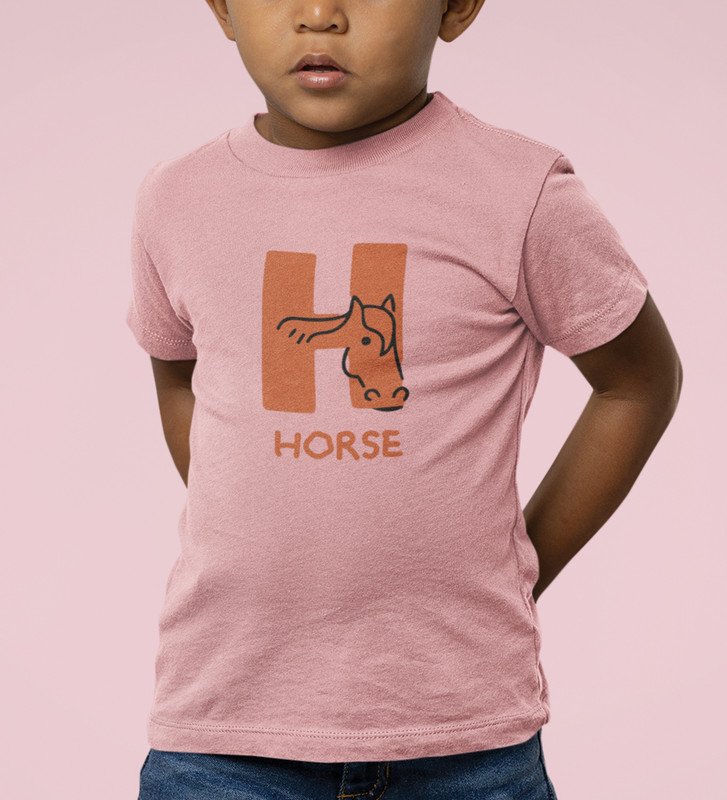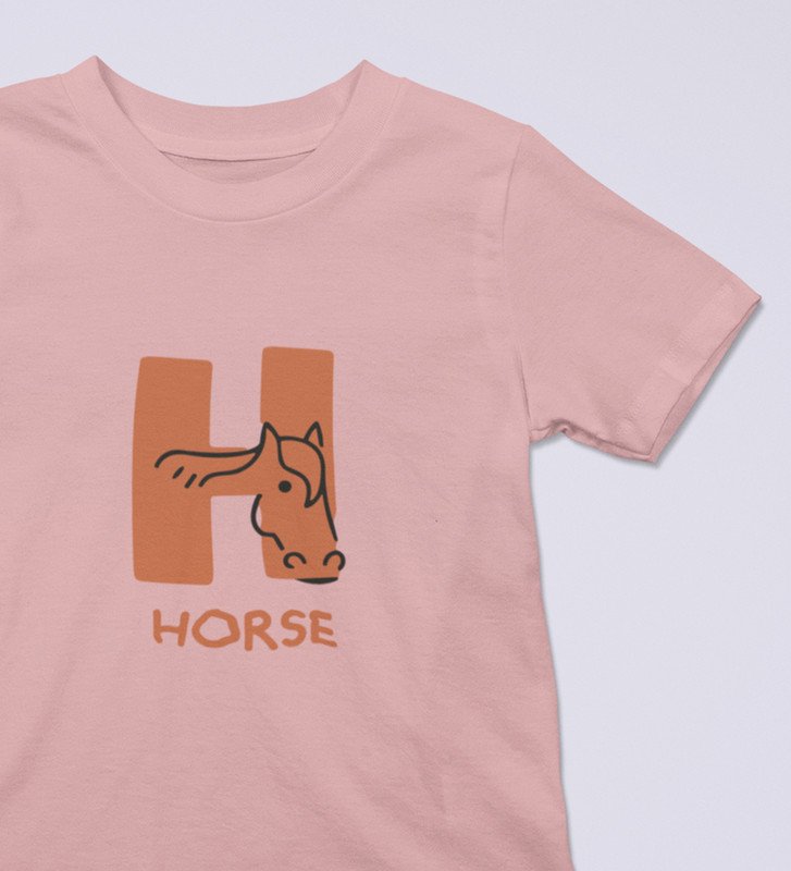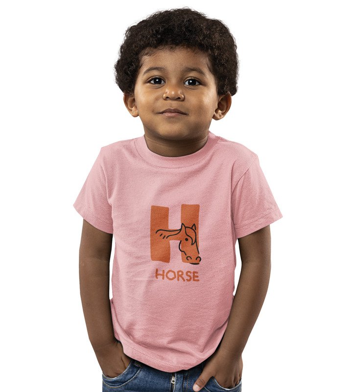 Homely Horse, Boys Round Neck Printed Blended Cotton Tshirt (Baby pink)