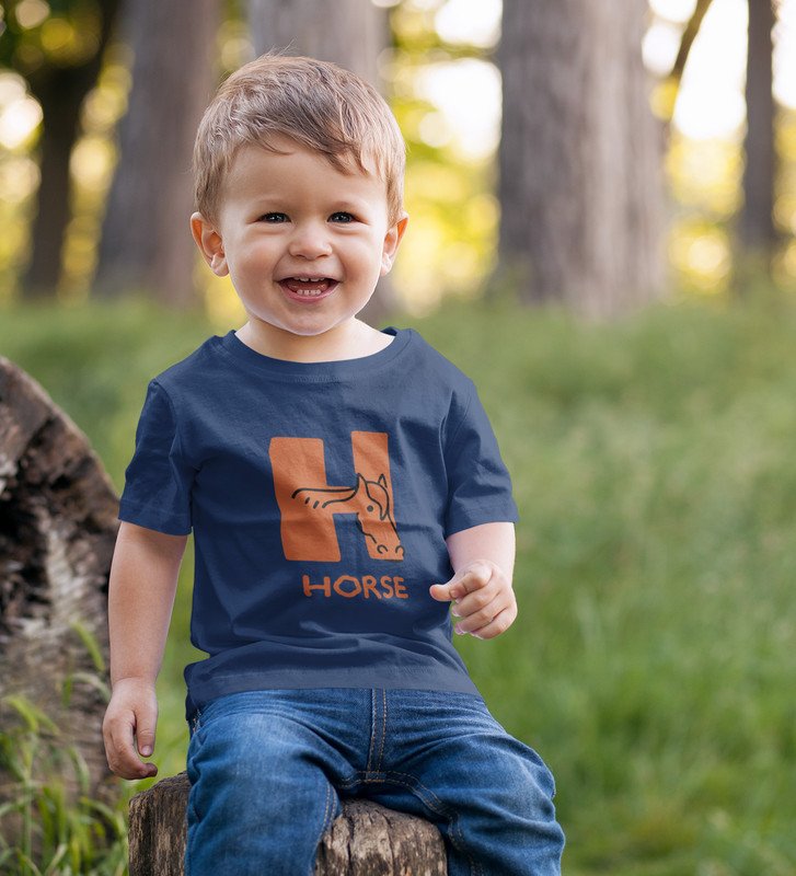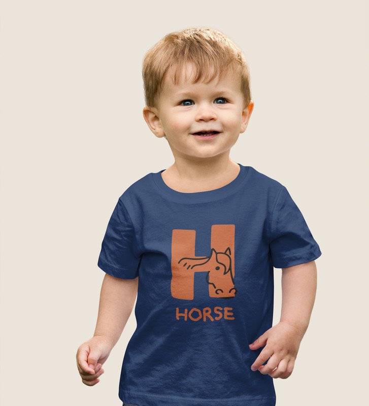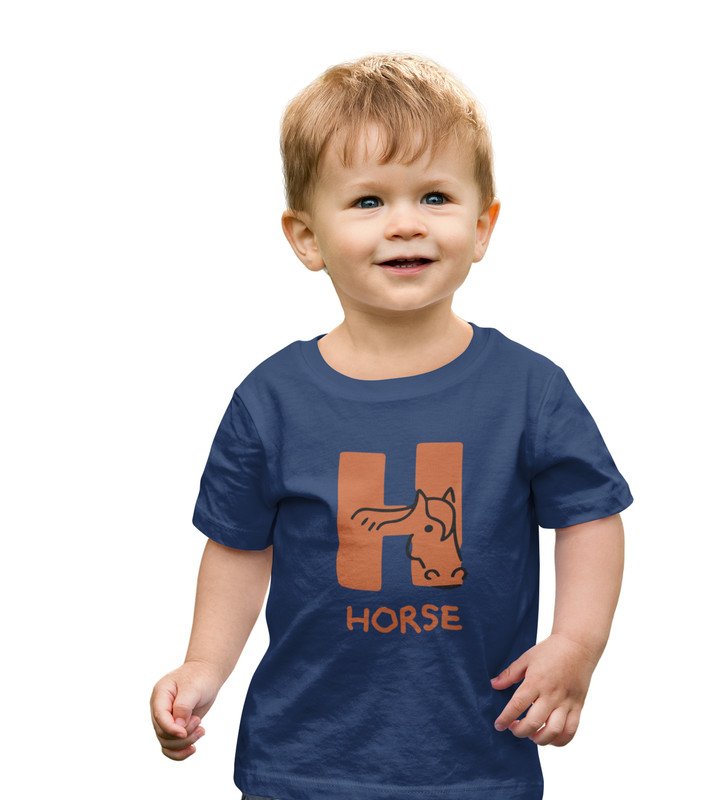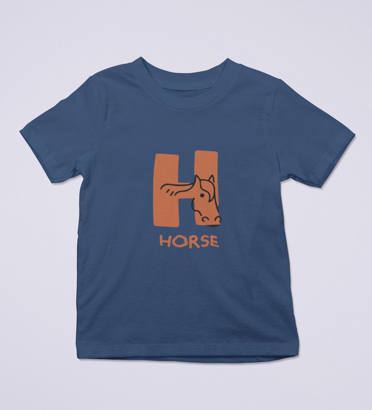 Homely Horse, Boys Round Neck Printed Blended Cotton tshirt (Navy blue)