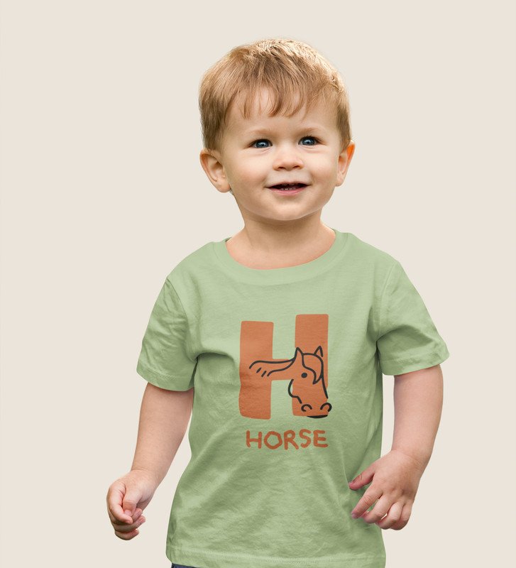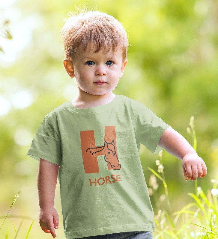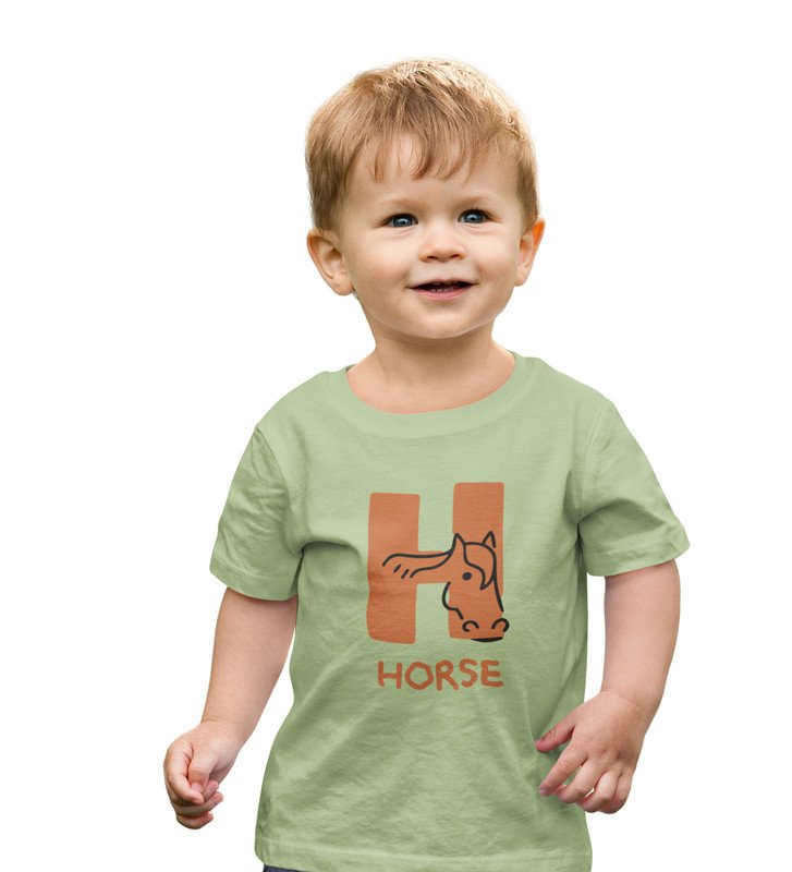Homely Horse, Boys Round Neck Printed Blended Cotton tshirt (olive)