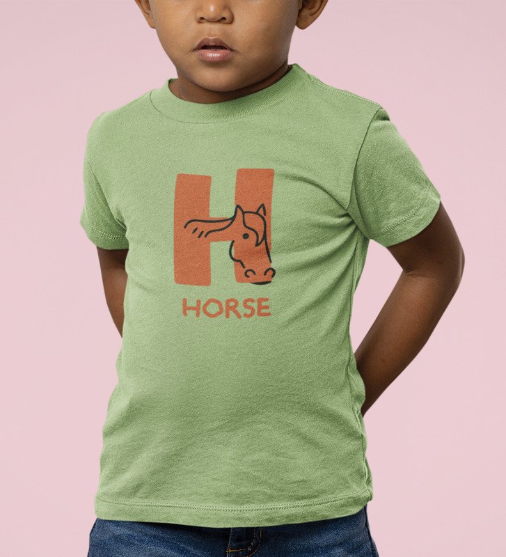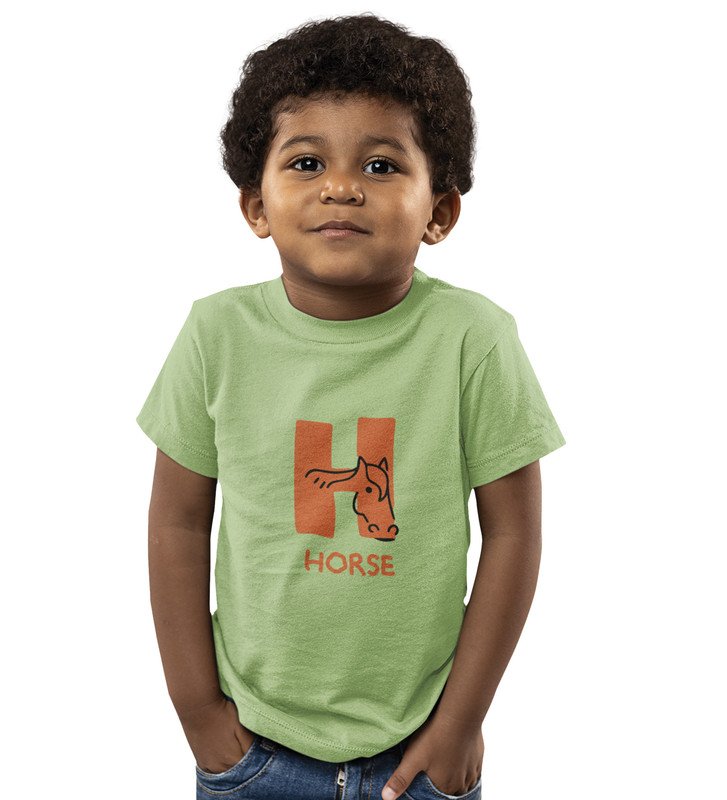 Homely Horse, Boys Round Neck Printed Blended Cotton Tshirt (Olive)