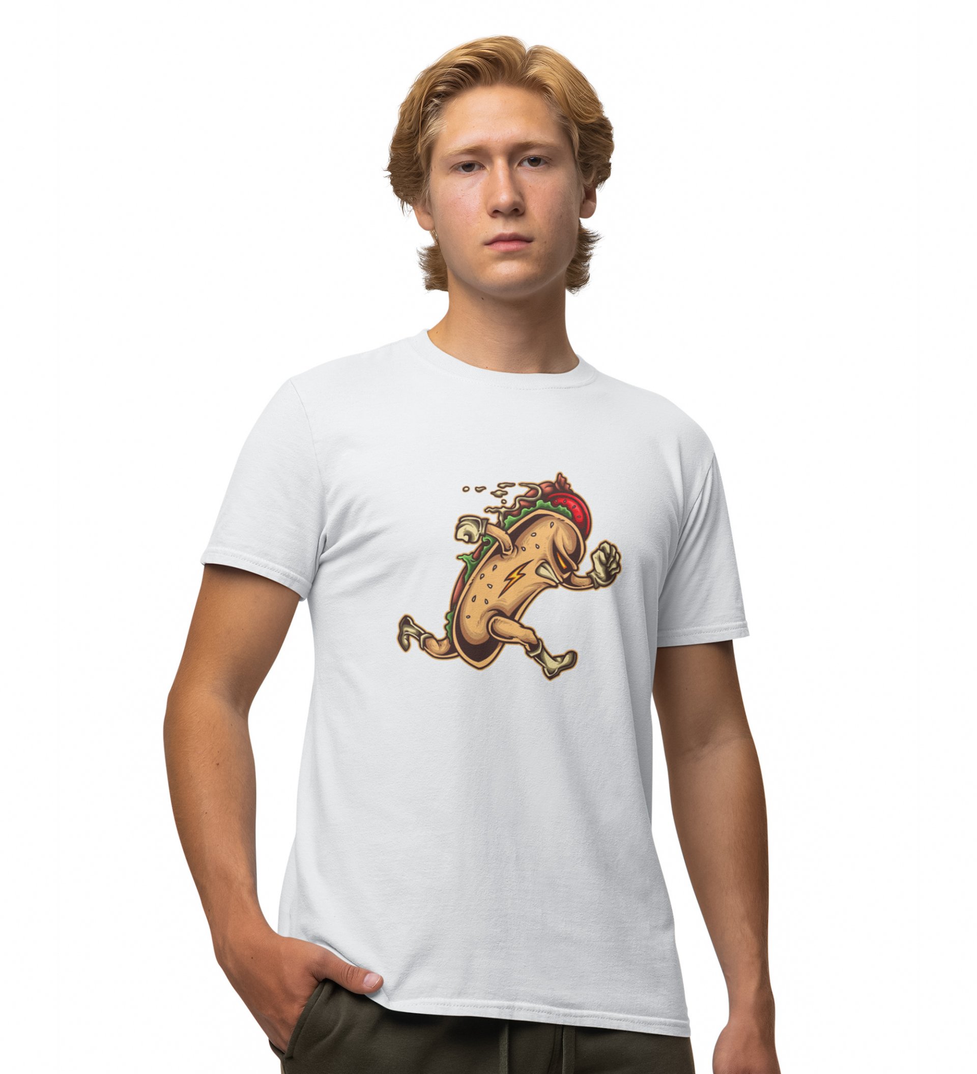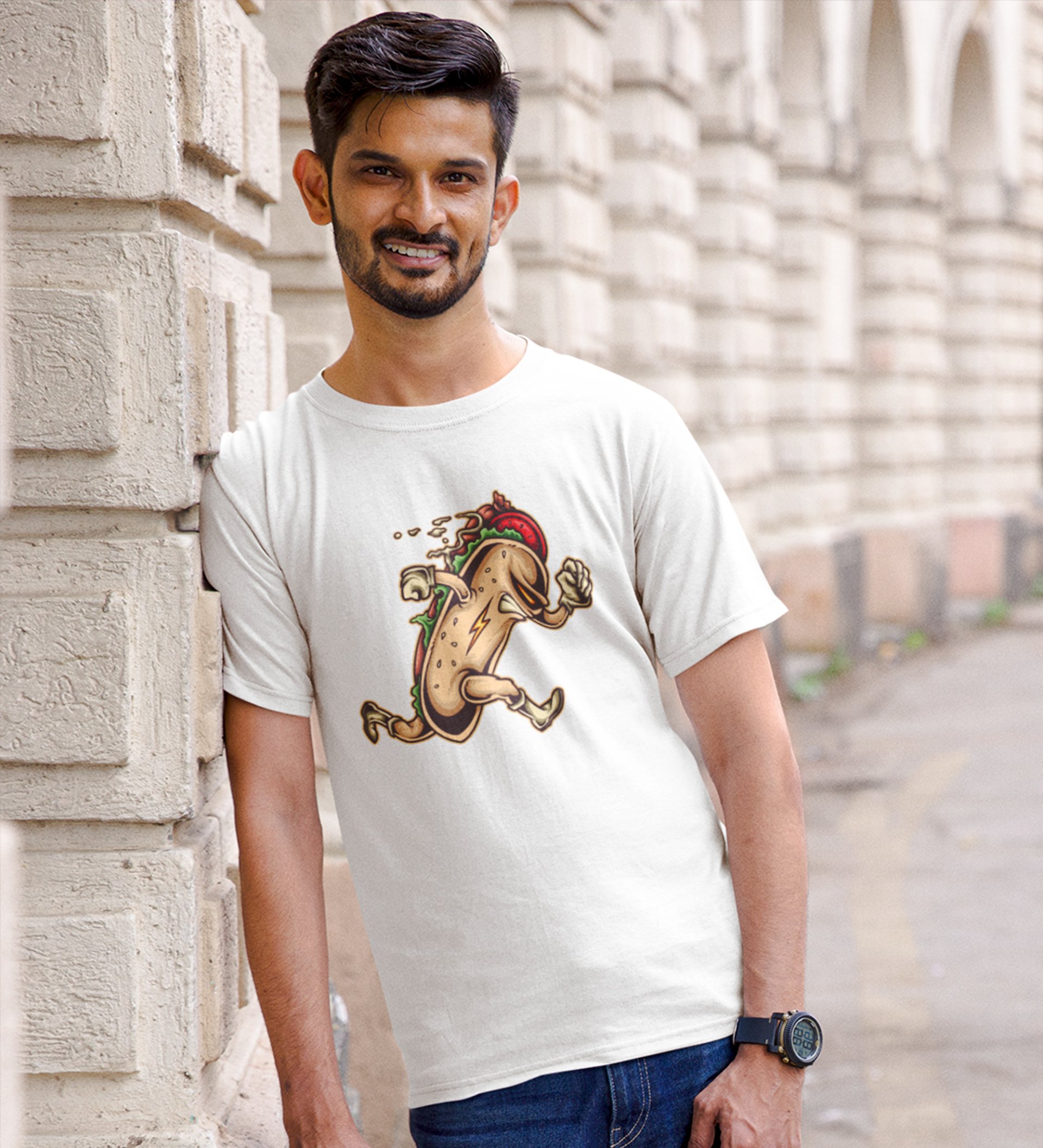 Hudler Hot dog White Round Neck Cotton Half Sleeved Men's T-Shirt with Printed Graphics