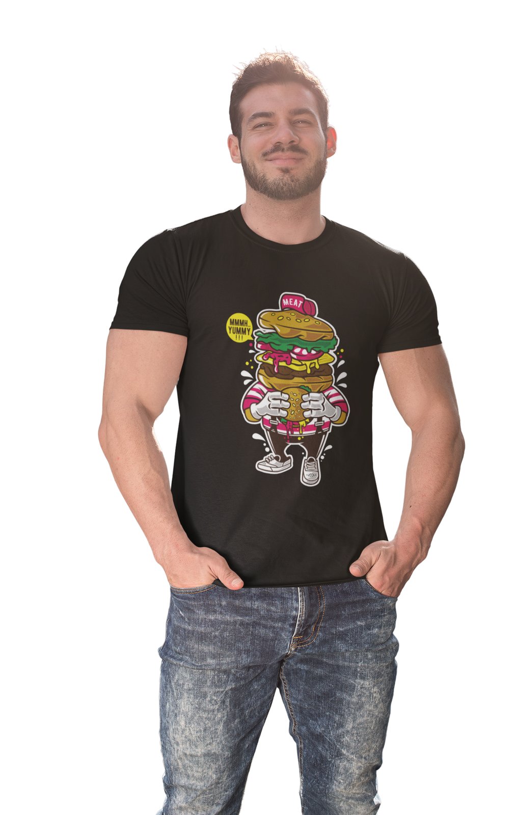 Hungry Burger -round crew neck cotton tshirts for men