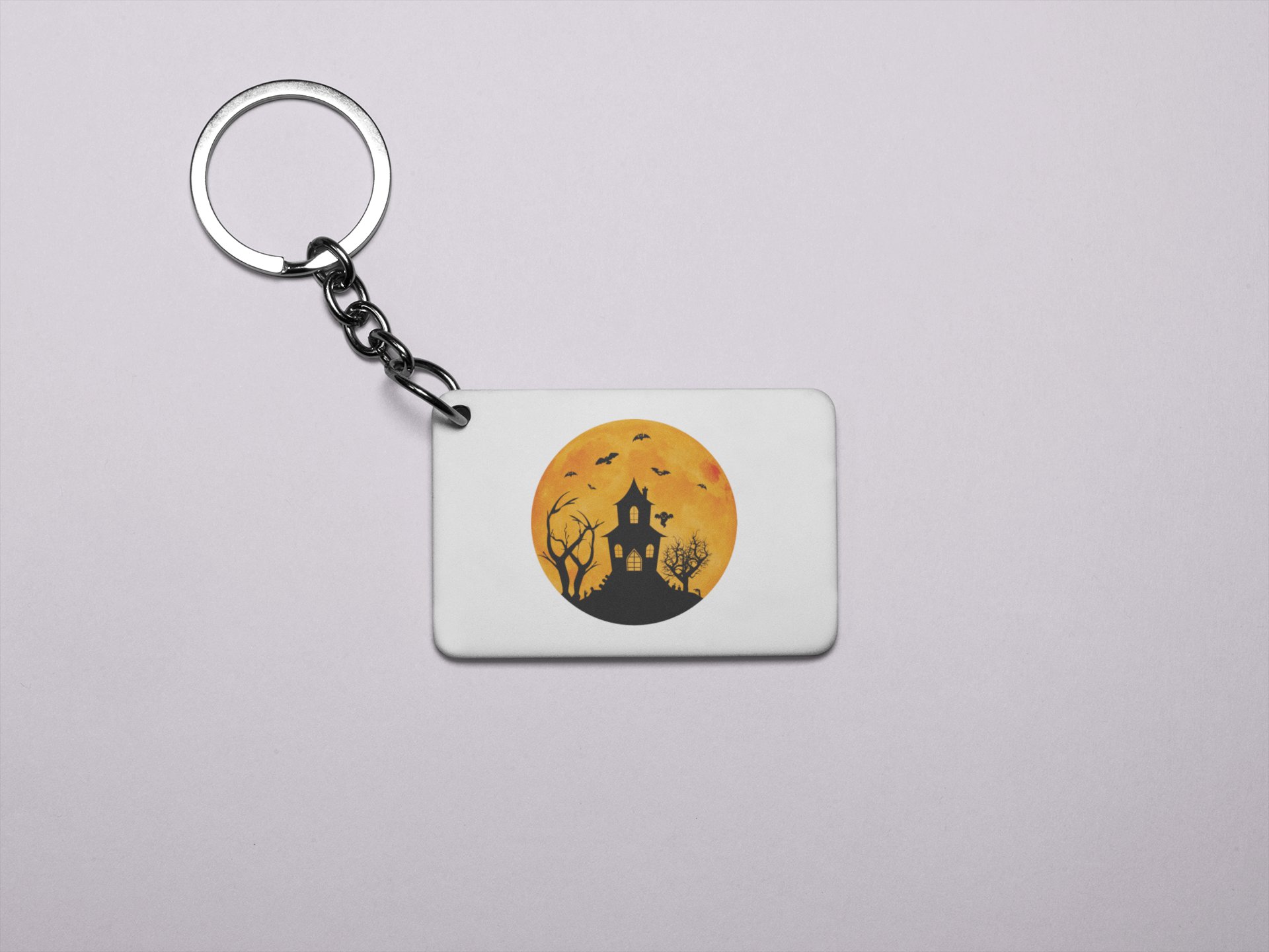 Hunted House With Scary Trees -Printed Acrylic Keychains(Pack Of 2)