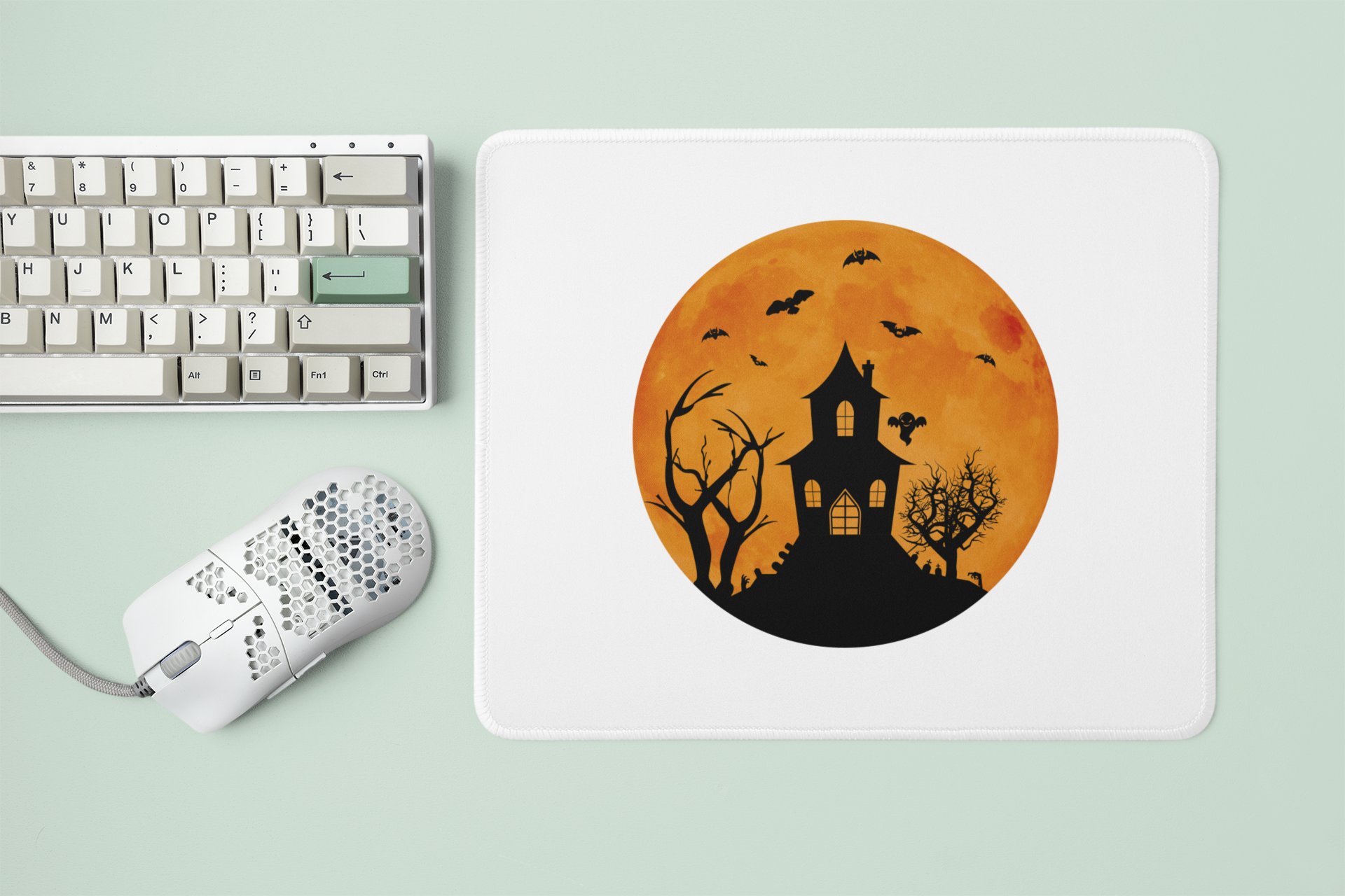 Hunted House With Scary Trees -Halloween Theme Mousepads