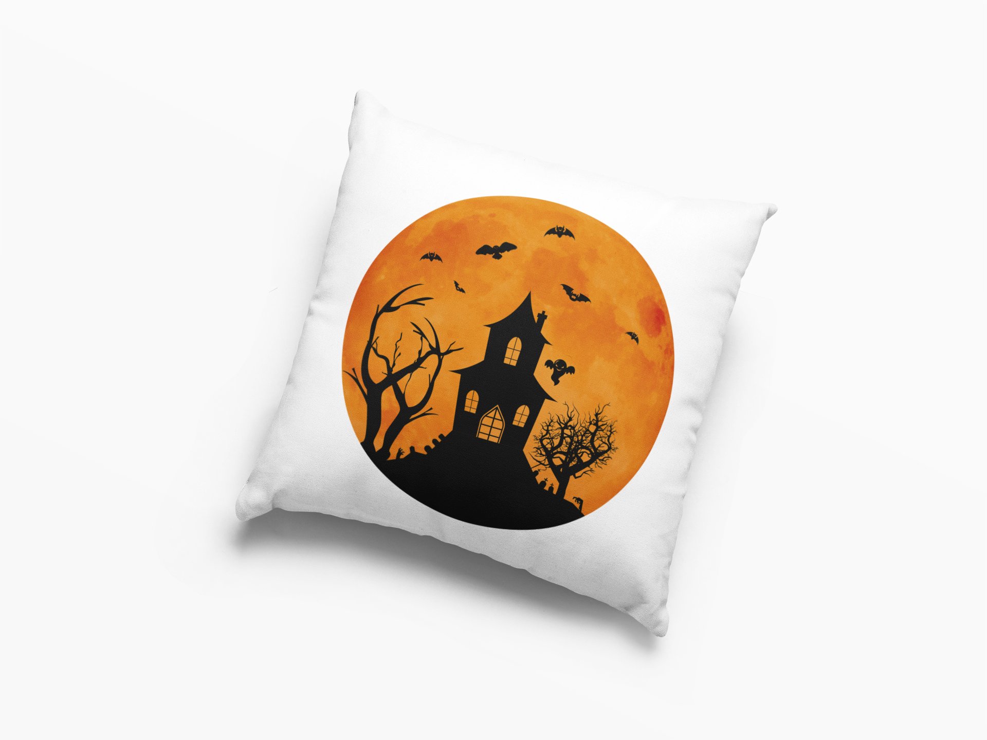 Hunted House With Scary Trees -Halloween Theme Pillow Covers (Pack Of 2)