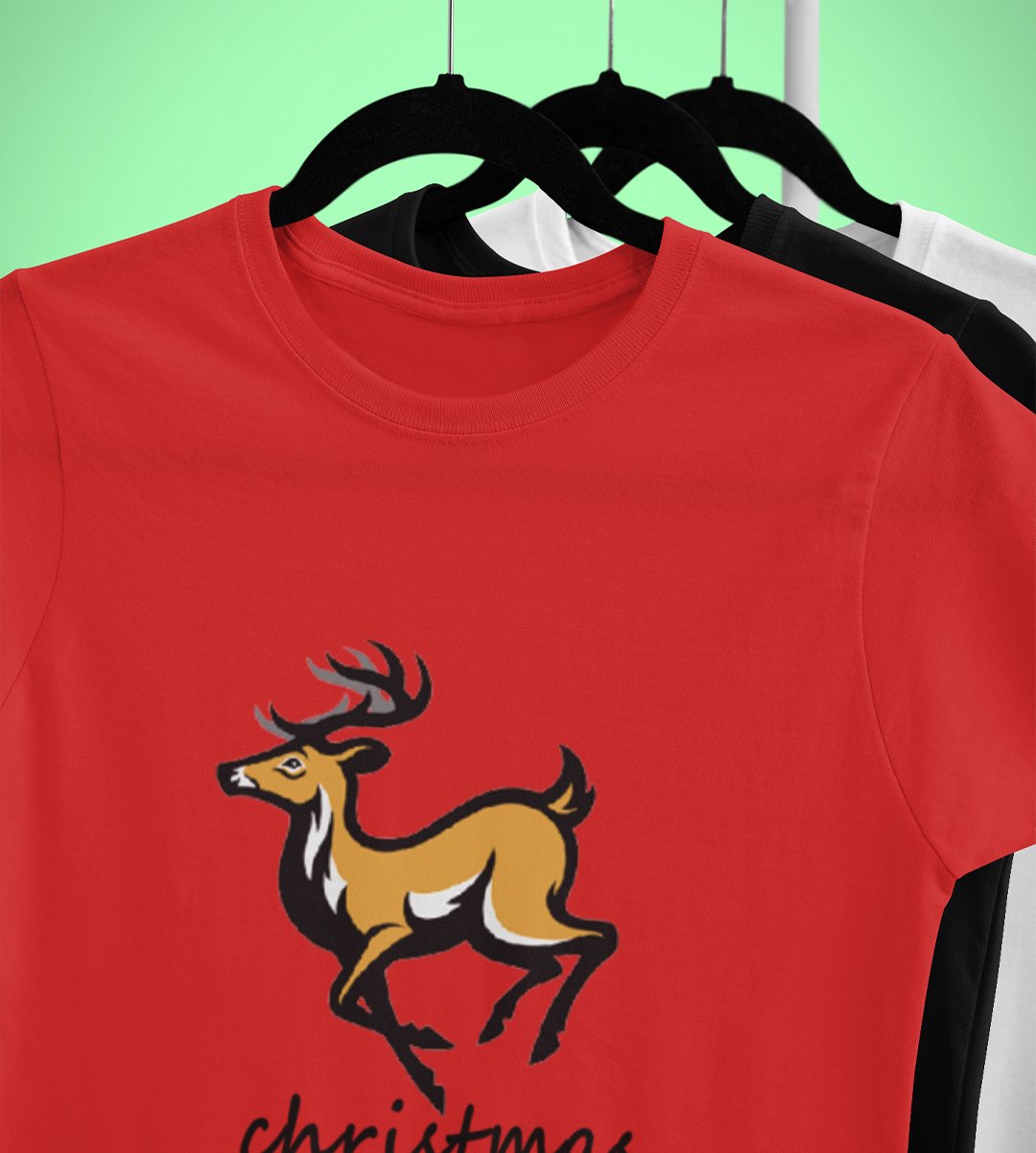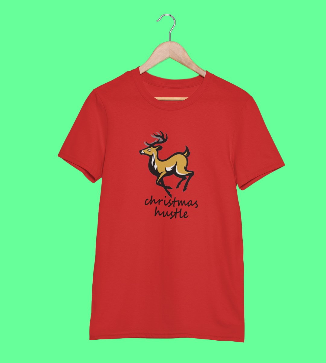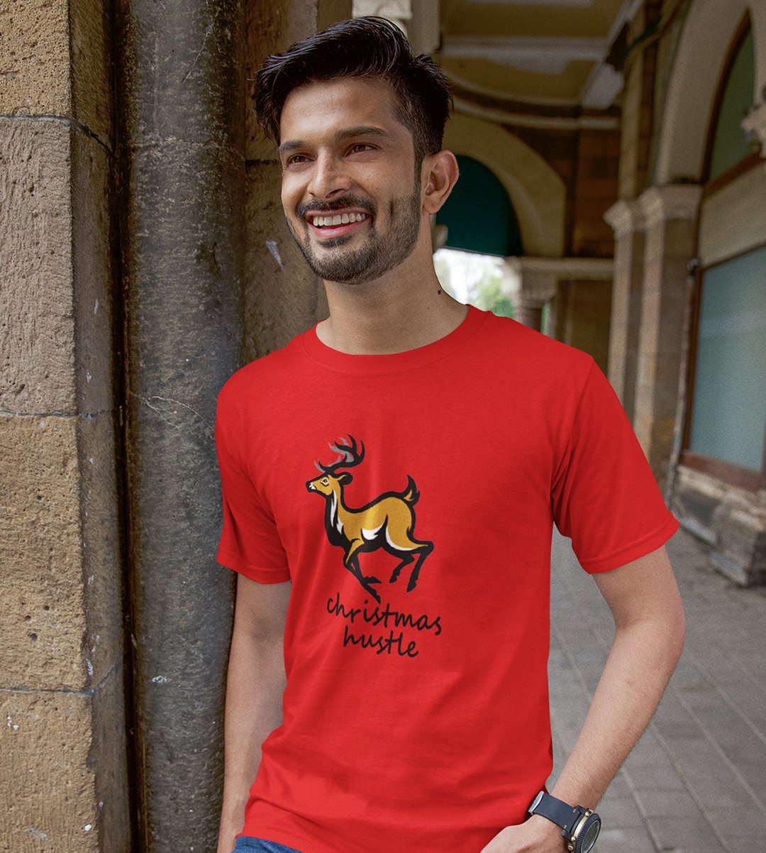 Hustling Reindeer : Funny & Cute Printed T-shirt (Red) Perfect Gift For Secret Santa