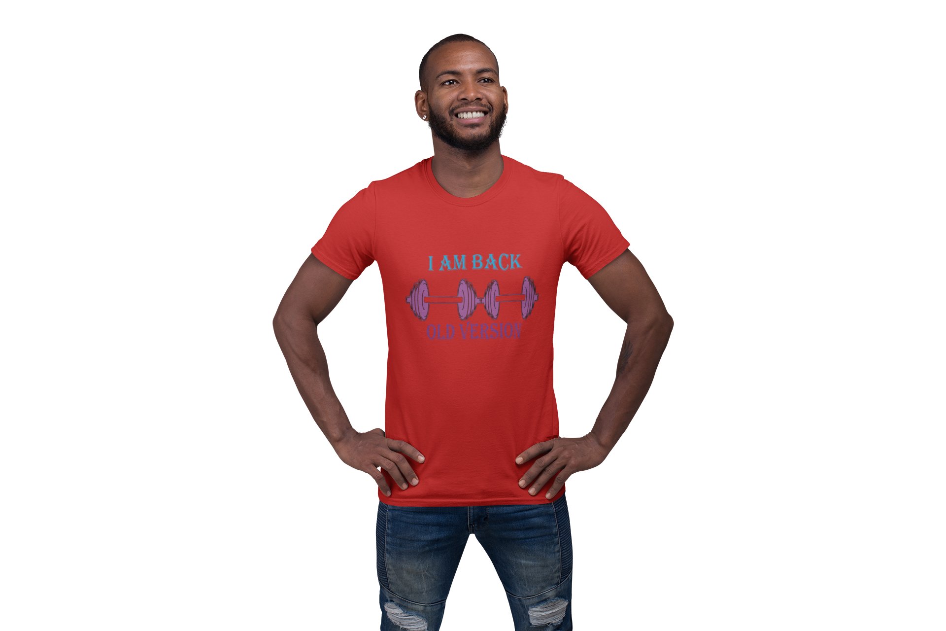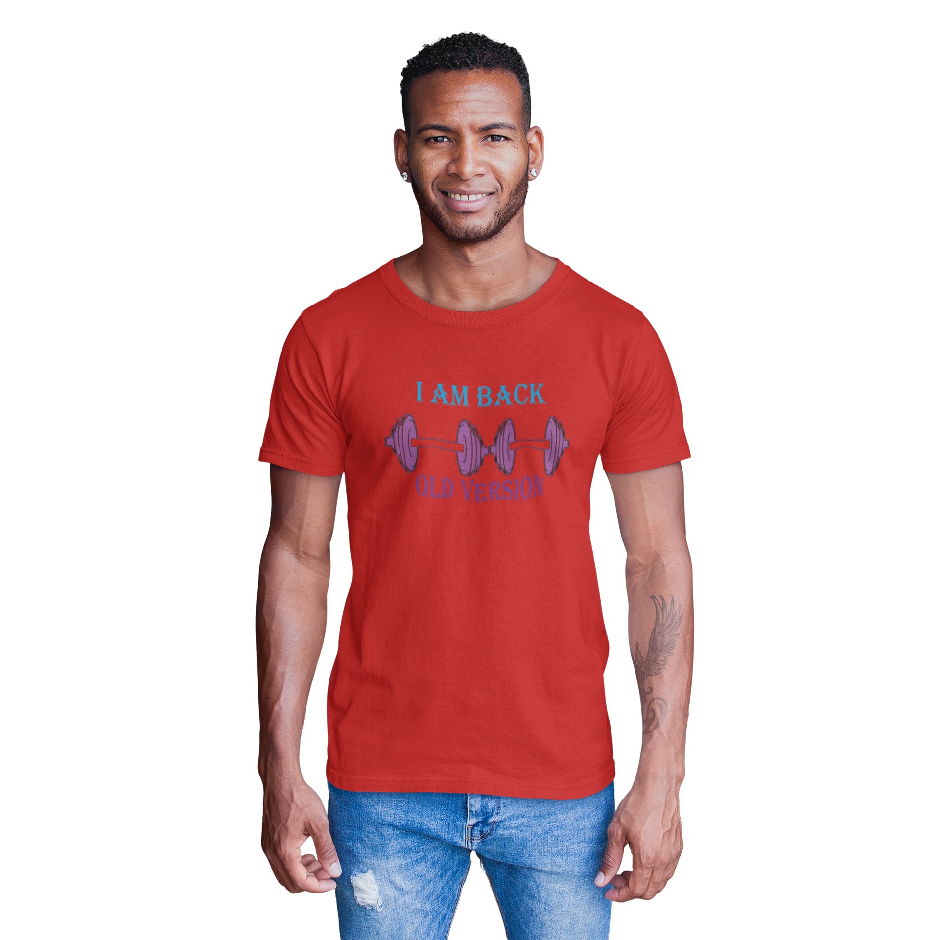 I Am Back, Old Version,(BG Blue and Violet), Round Neck Gym Tshirt (Red Tshirt) - Clothes for Gym Lovers - Suitable for Gym Going Person - Foremost Gifting Material for Your Friends and Close Ones