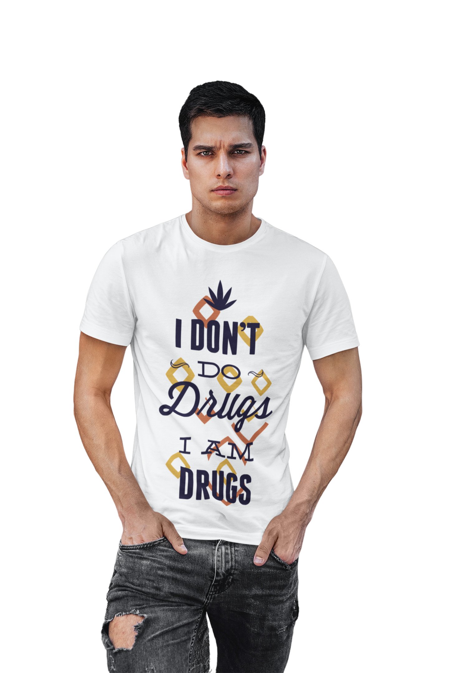 I am drugs - White - printed T-shirts -Abstract Funny thoughtful creative illustrations - Men's stylish clothing - Cool tees for boys