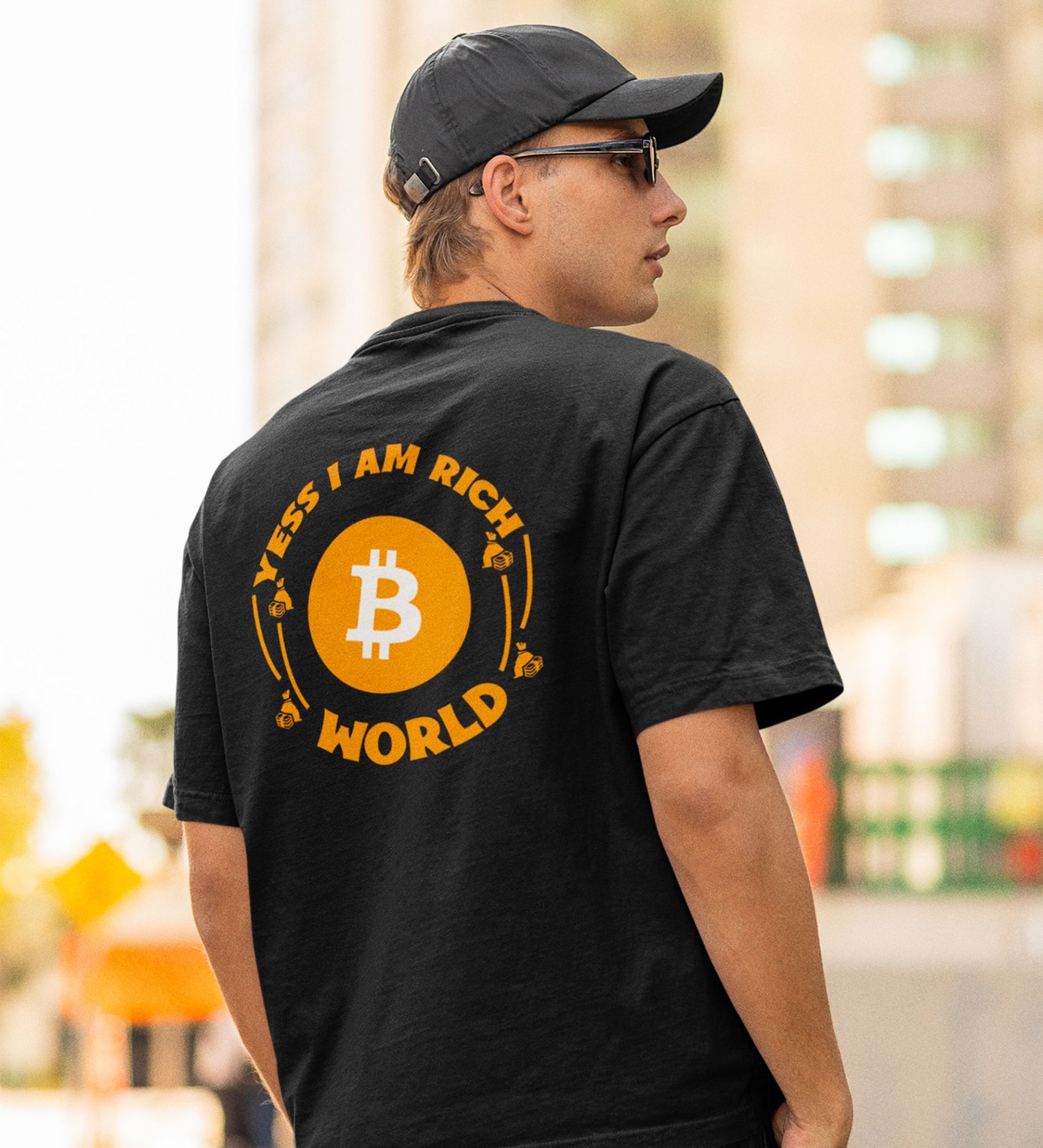 I Am Rich Wings Black Round Neck Cotton Half Sleeved Mens TShirt with Printed Graphics