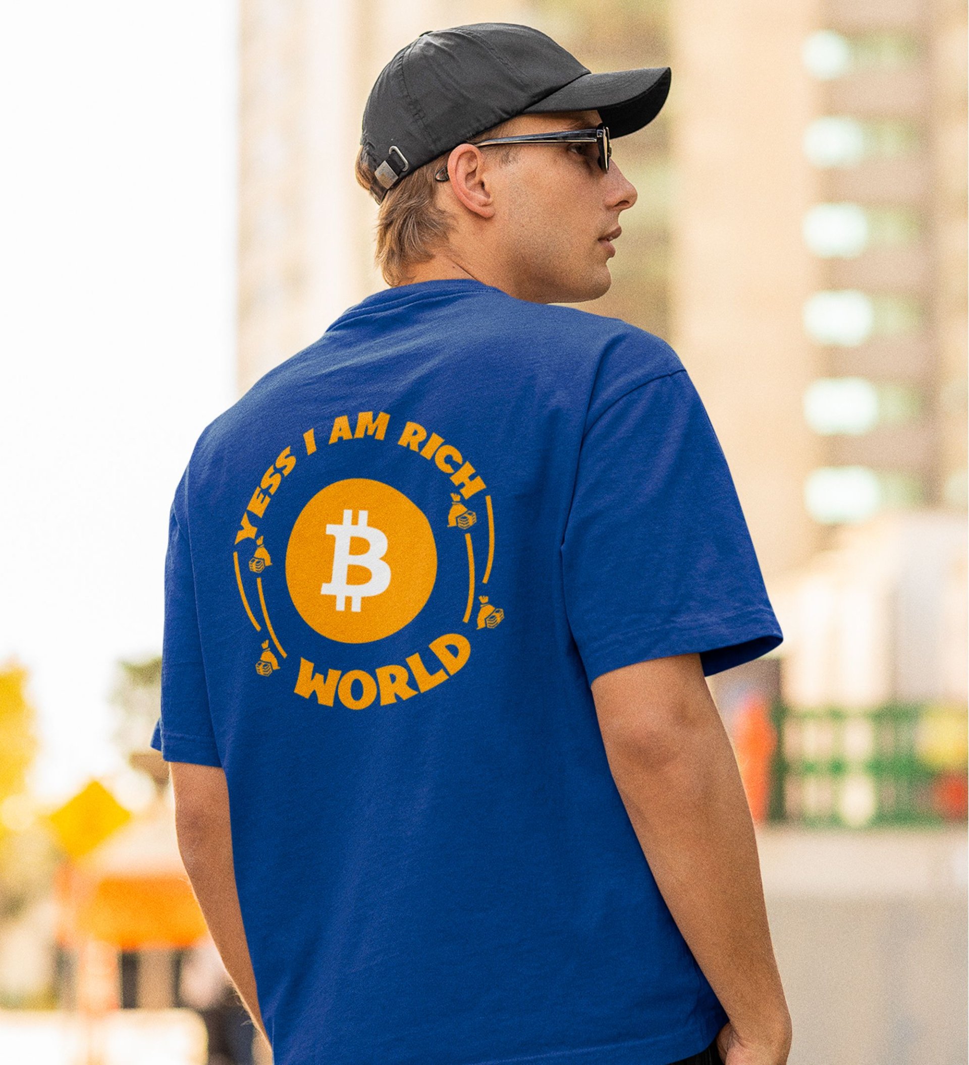 I Am Rich Wings Blue Round Neck Cotton Half Sleeved Men's T Shirt with Printed Graphics