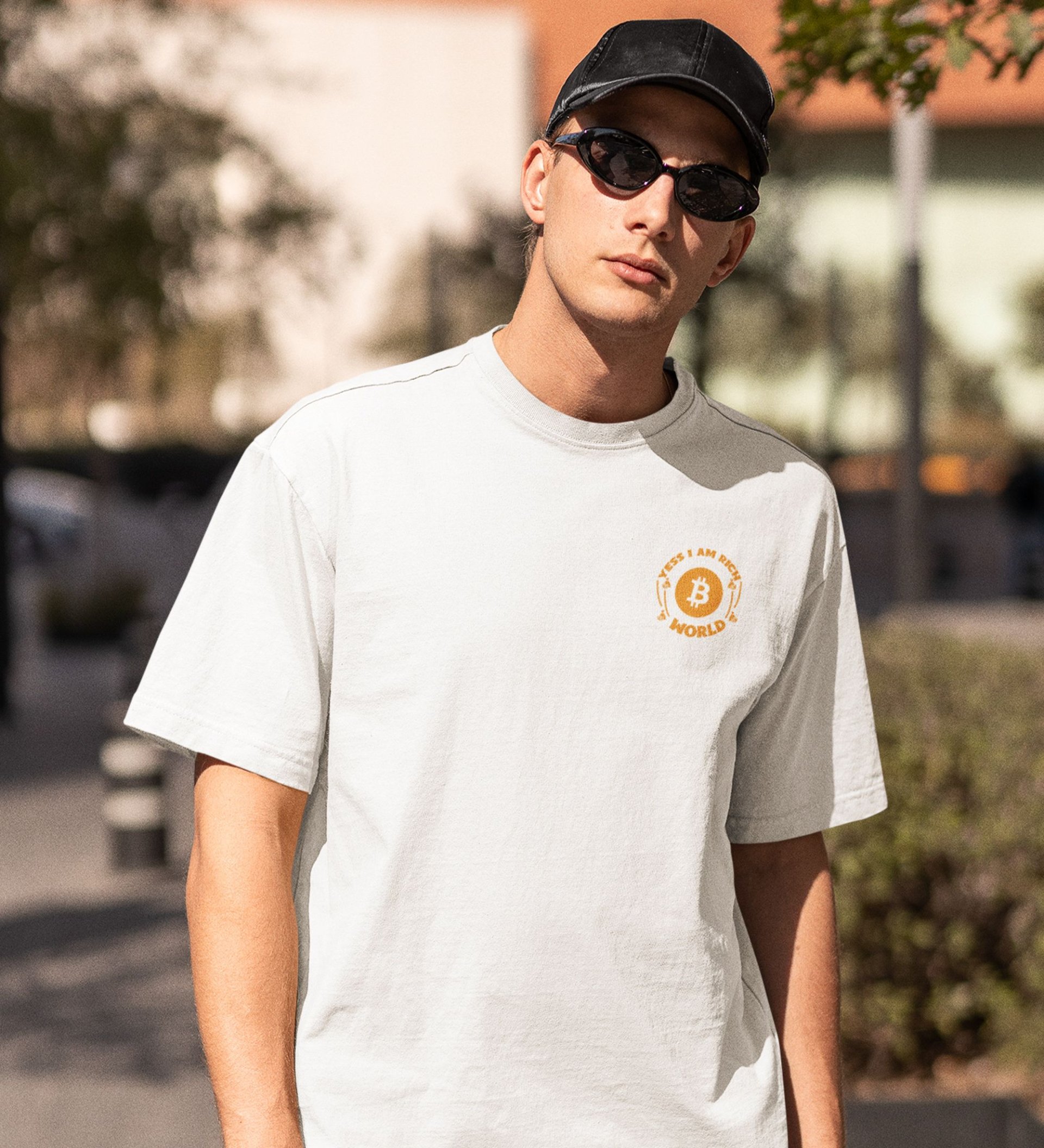 I Am Rich Wings White Round Neck Cotton Half Sleeved Men's T Shirt with Printed Graphics