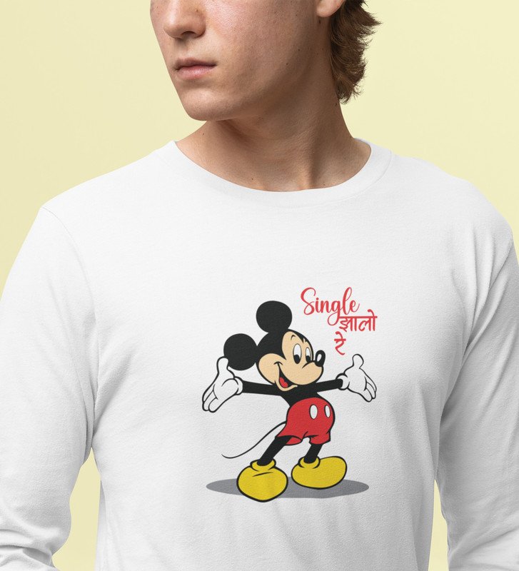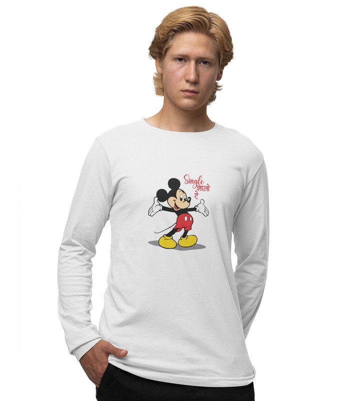 I Am Single Again (white) Full Sleeve T-Shirt For Singles With Print