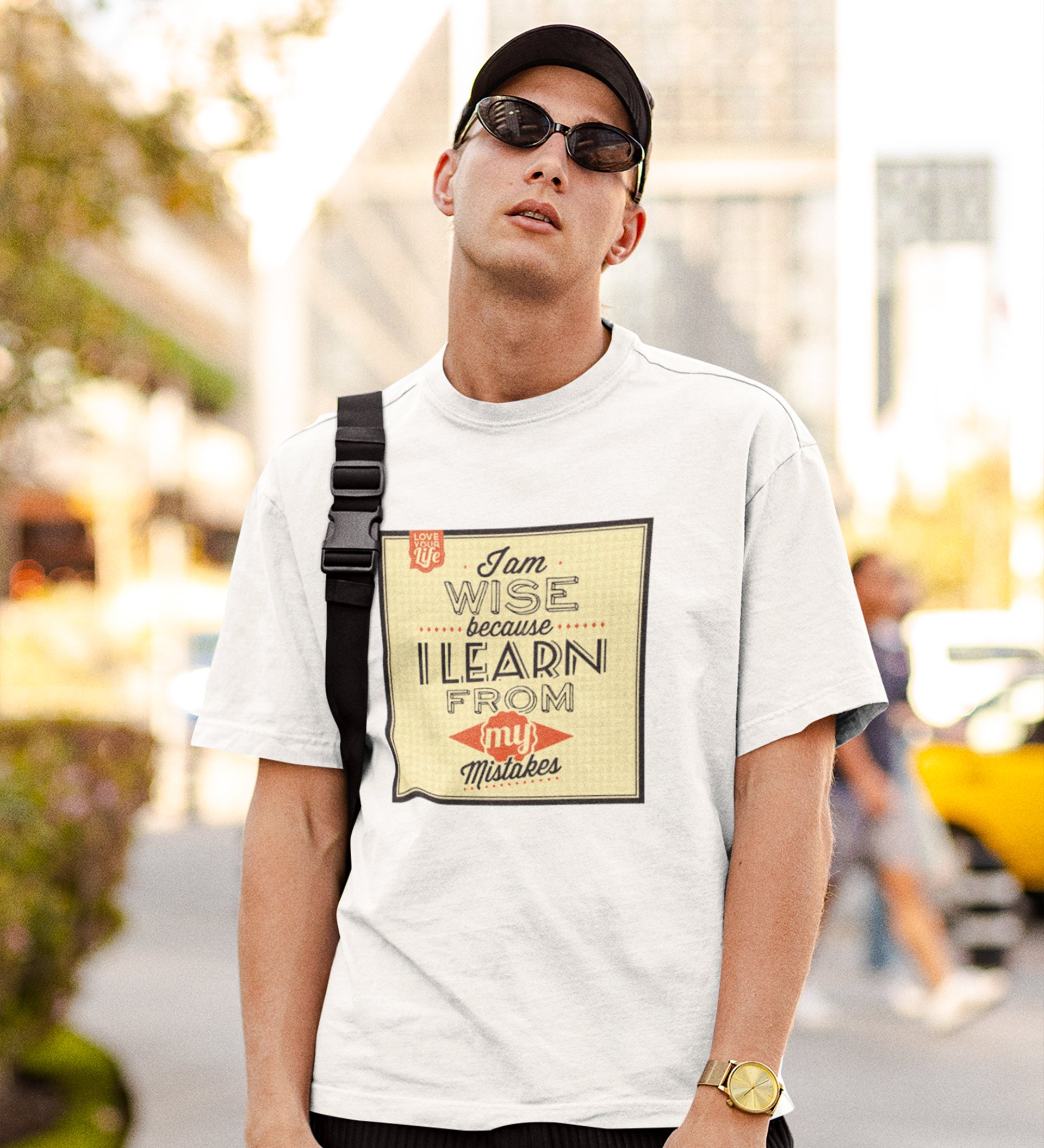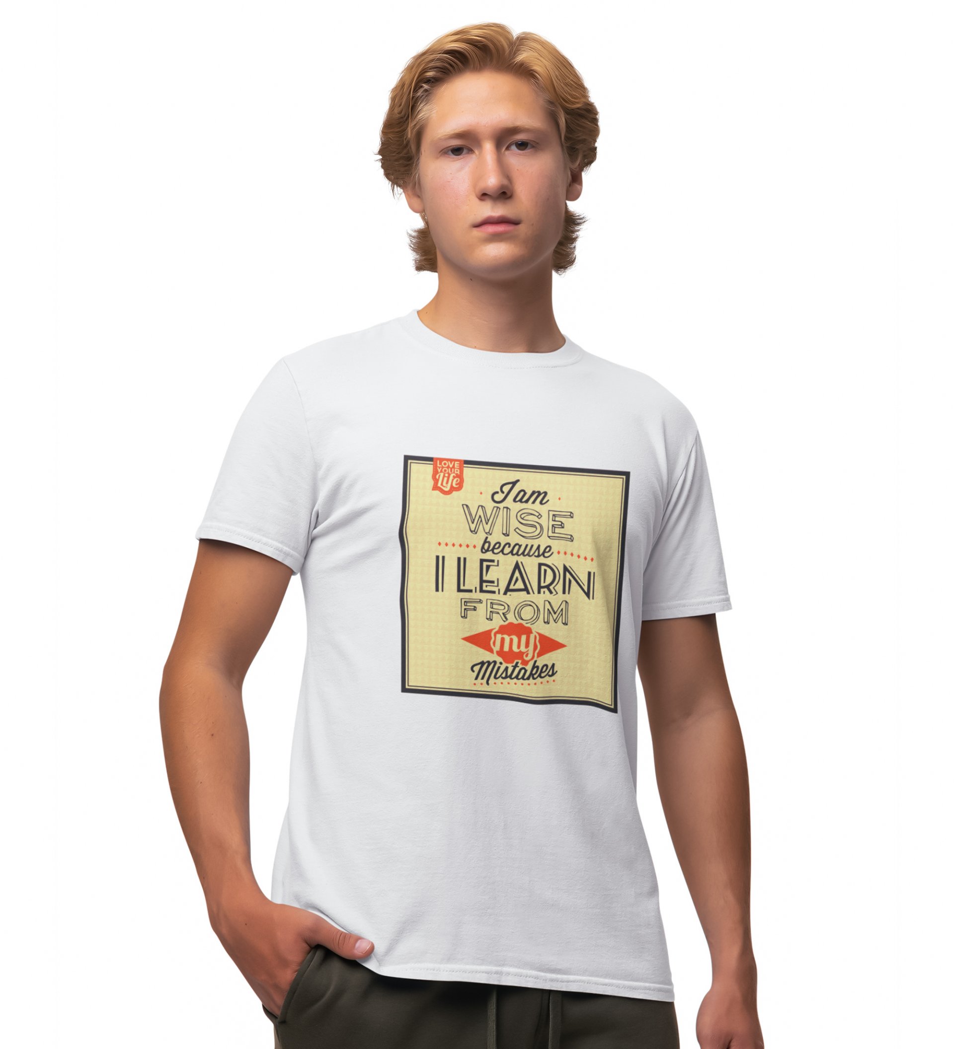 Mistakes White Round Neck Cotton Half Sleeved Men's T-Shirt with Printed Graphics