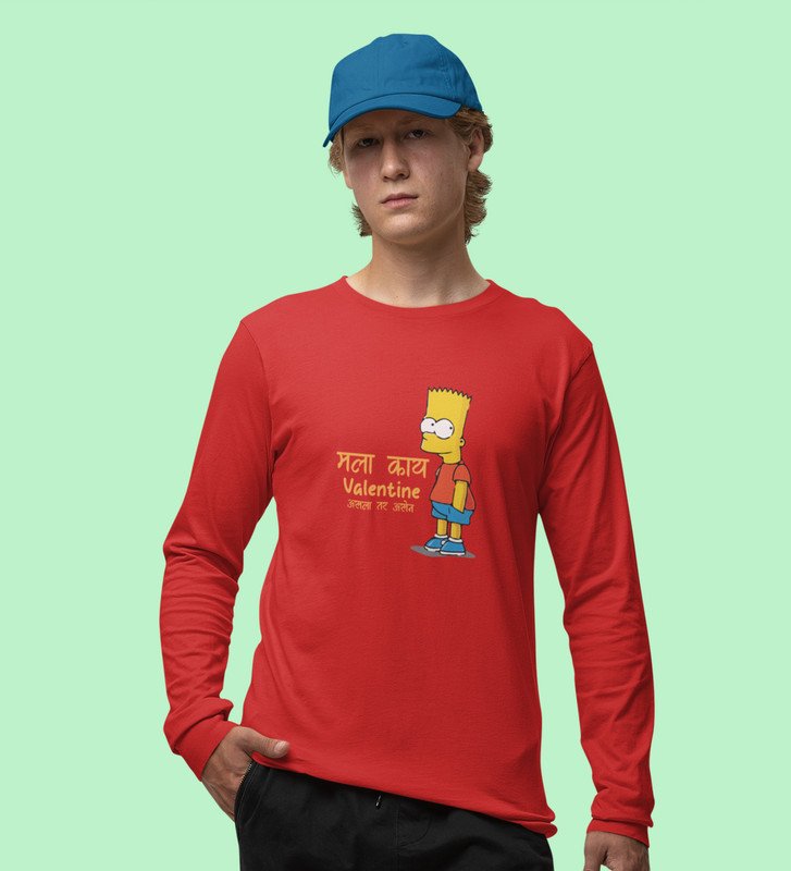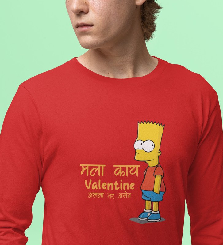 I Don't Care If I Am Valentine: (red) Full Sleeve T-Shirt For Singles