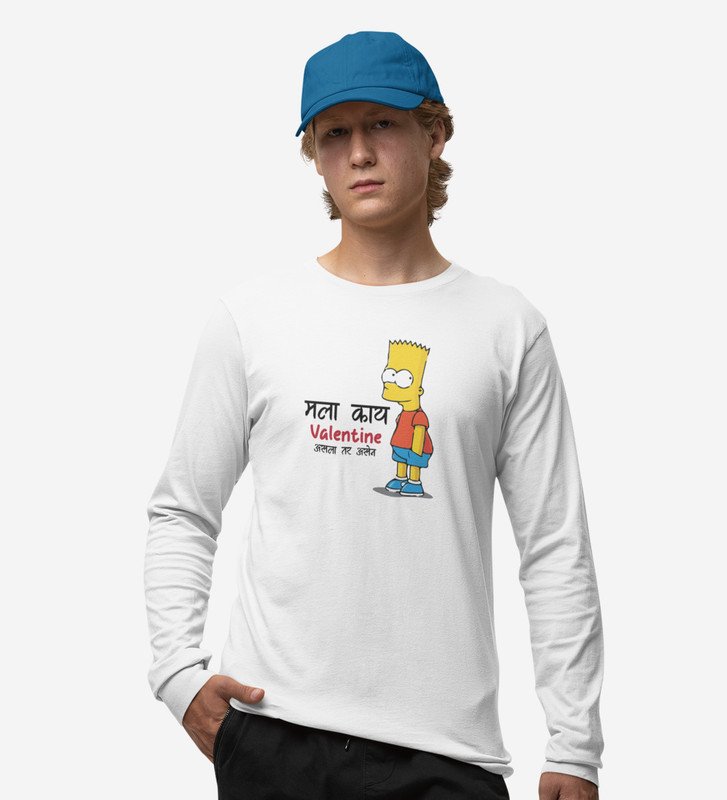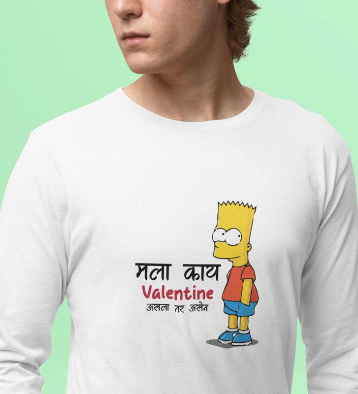 I Don't Care If I Am Valentine: (white) Full Sleeve T-Shirt For Singles