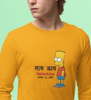 I Don't Care If I Am Valentine: (yellow) Full Sleeve T-Shirt For Singles
