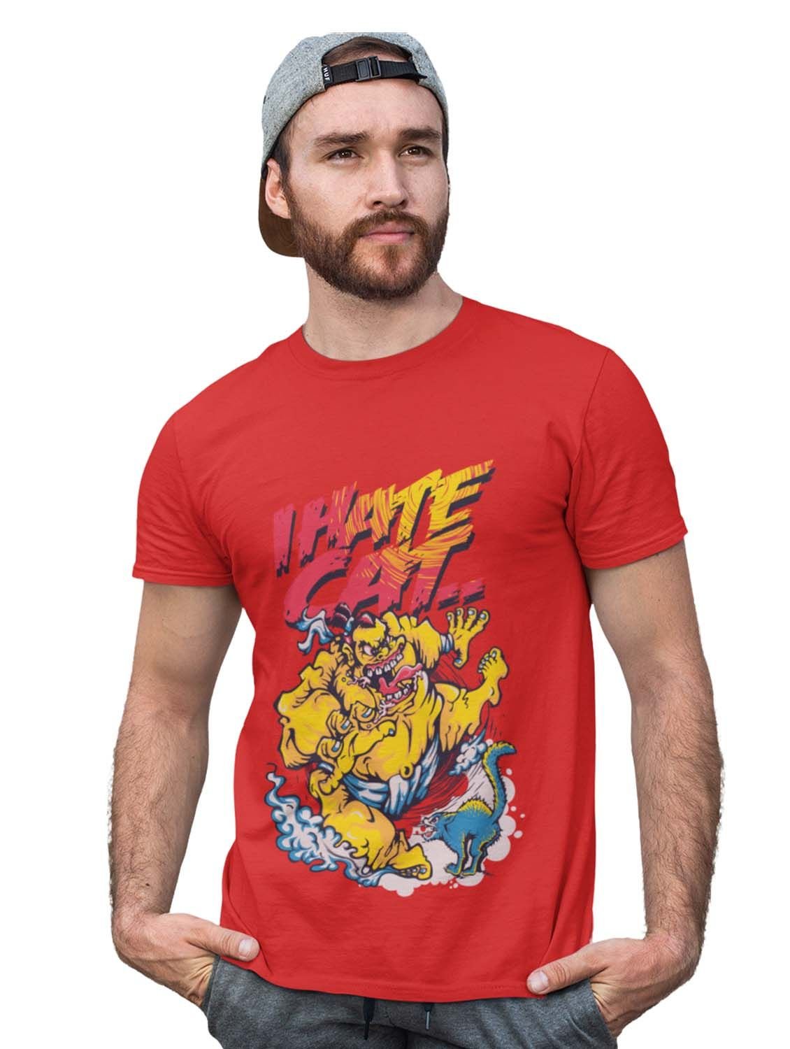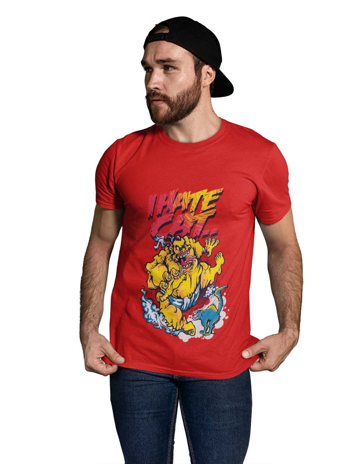 Cat Lover Red Round Neck Cotton Half Sleeved T-Shirt with Printed Graphics