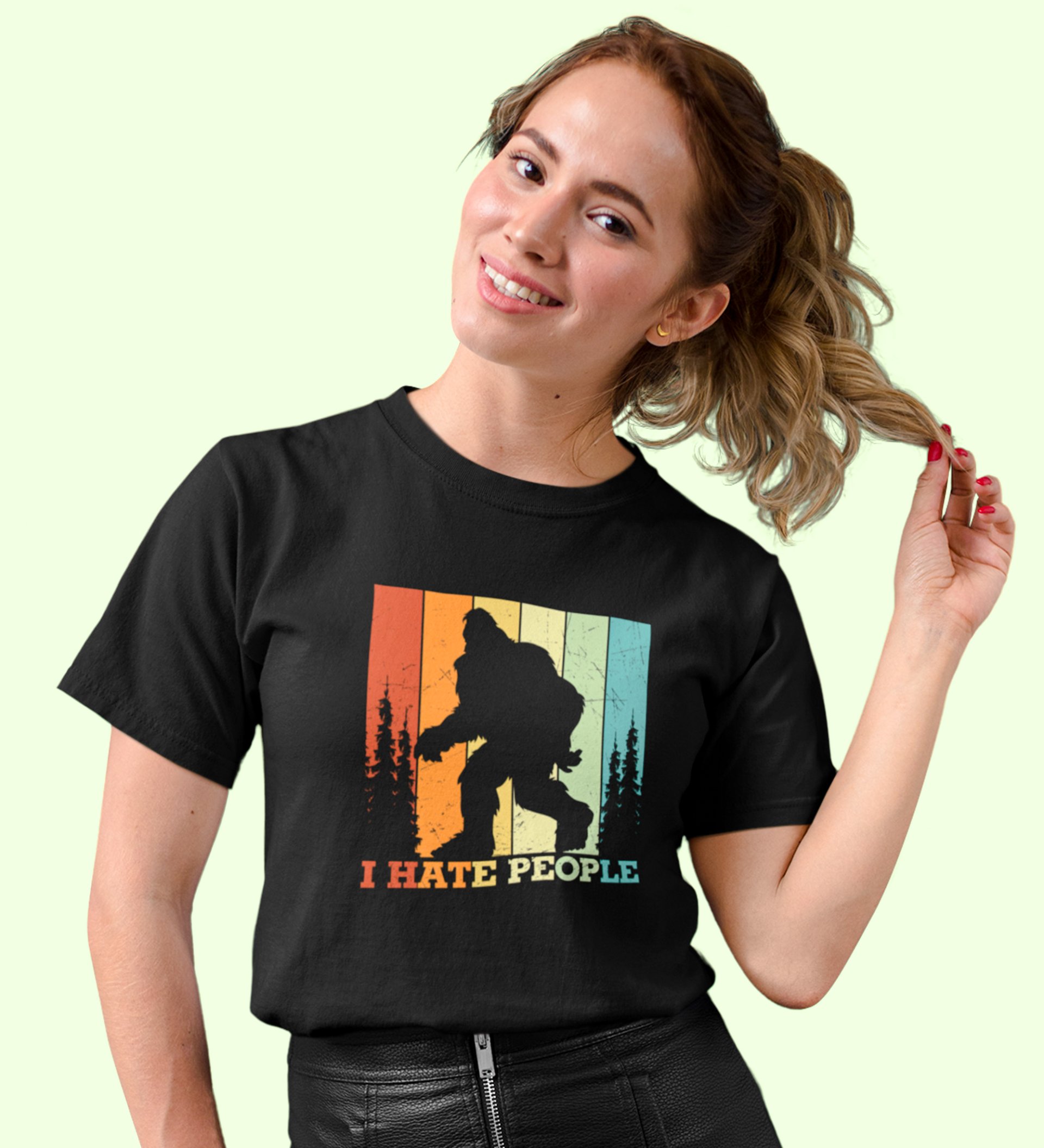 HopOfferI Hate People Black Round Neck Cotton Half Sleeved Women's T-Shirt with Printed Graphics