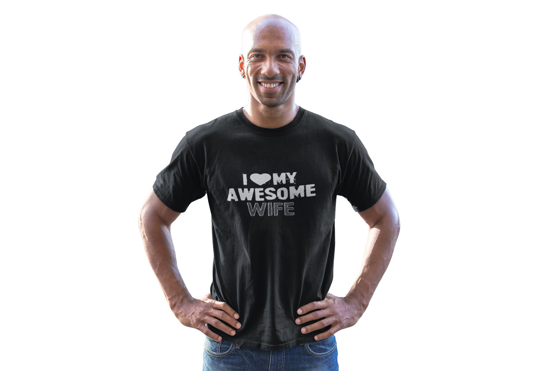 I love awesome wife(BG White)-printed family themed cotton blended half-sleeve t-shirts made for men (black)