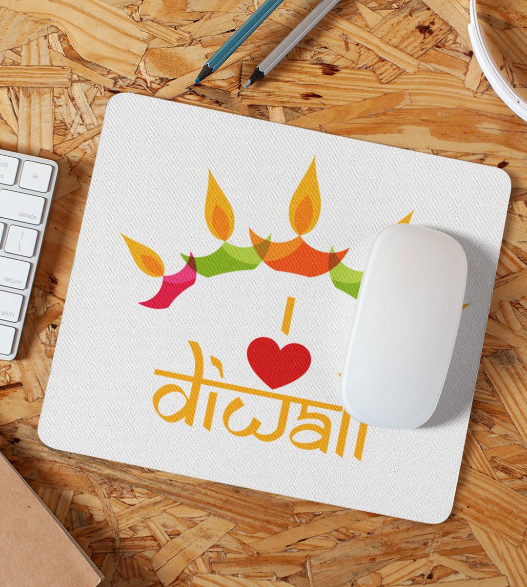 Express your love for Diwali in your workspace with our I Love Diwali Mouse Pad. It's a heartfelt declaration of your affection for the Festival of Lights.