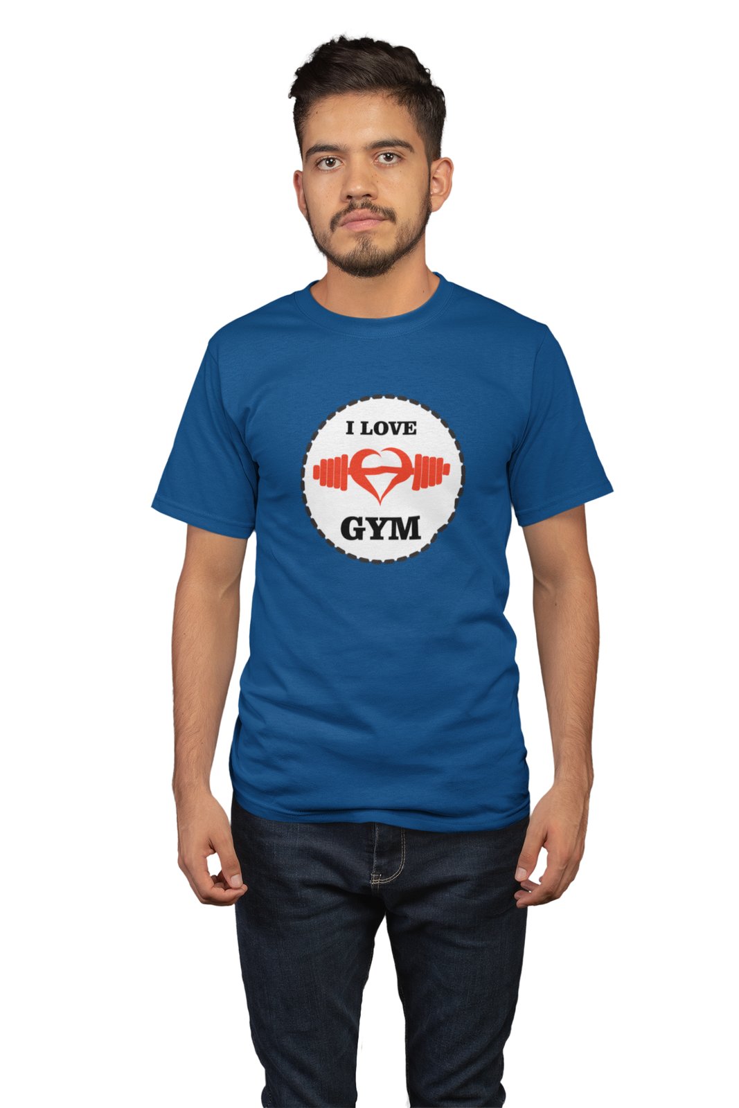 I Love Gym, Round Neck Gym Tshirt (Blue Tshirt) - Clothes for Gym Lovers - Suitable for Gym Going Person - Foremost Gifting Material for Your Friends and Close Ones