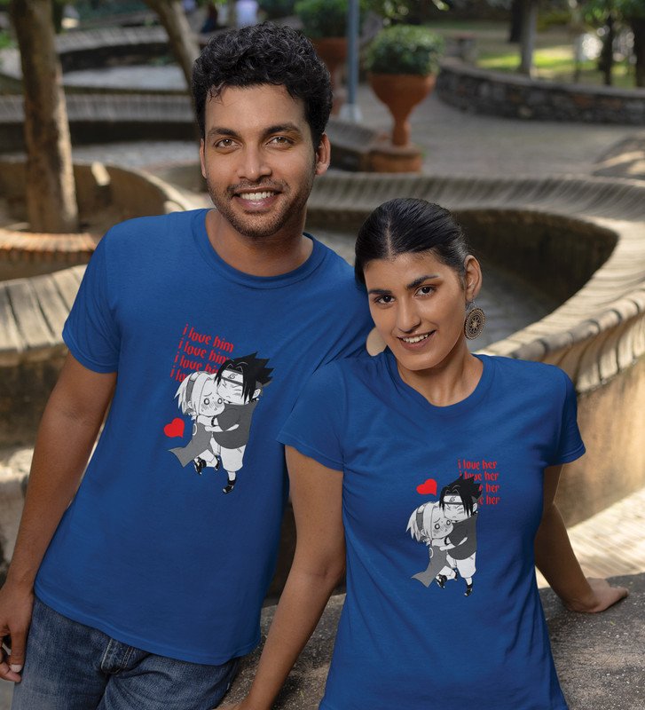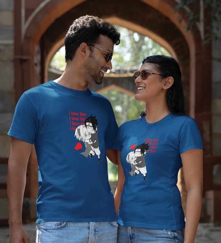 I Love Her/I Love Him (blue) T-shirts Printed For Couples