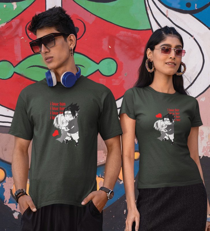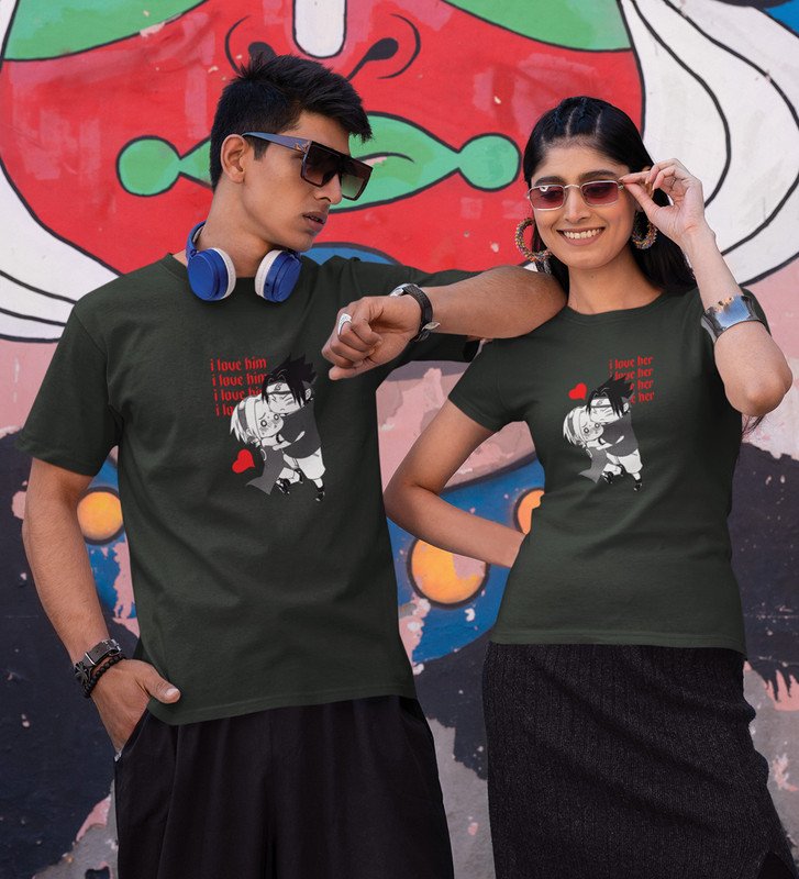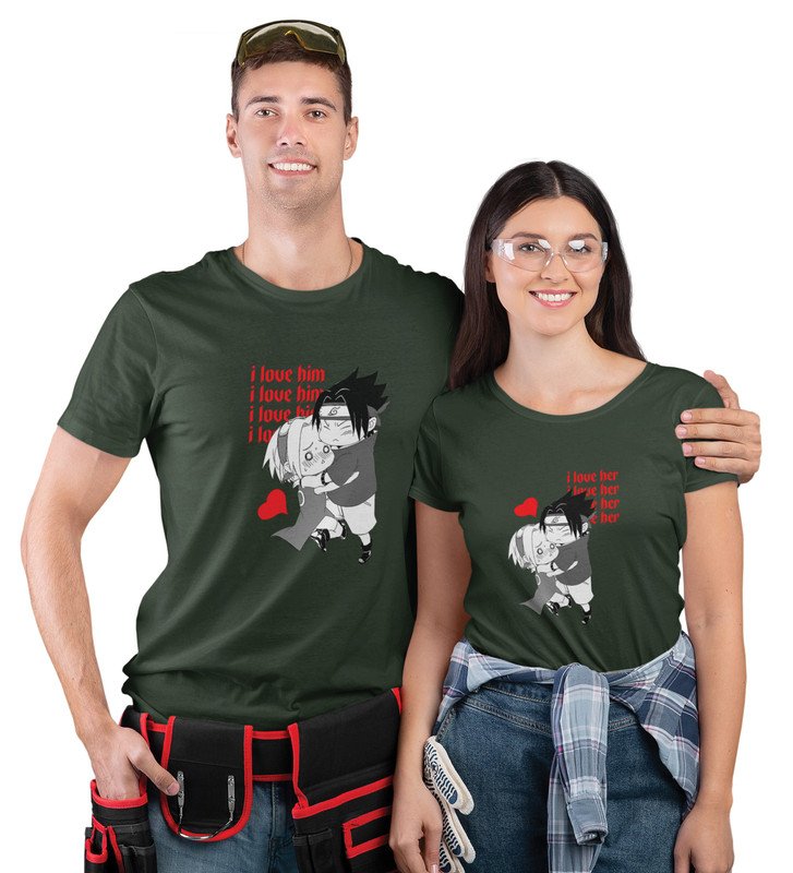 I Love Her/I Love Him (green) T-shirts Printed For Couples