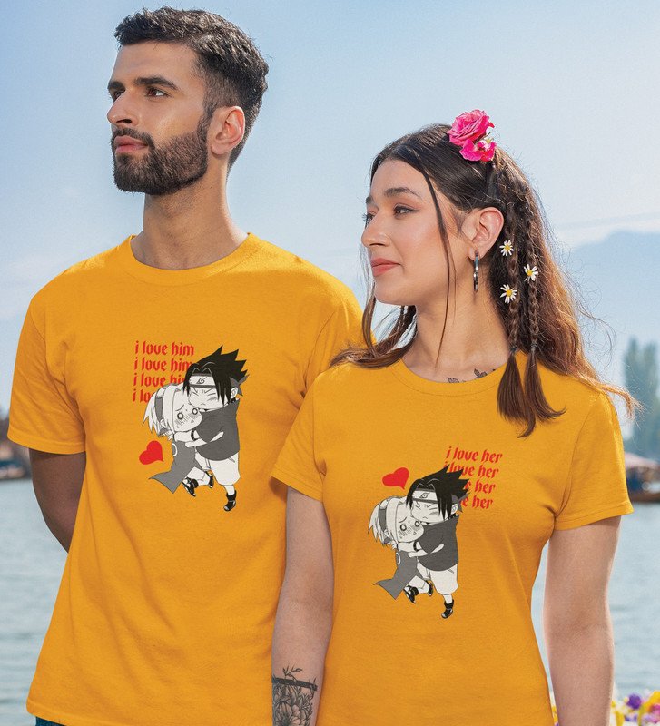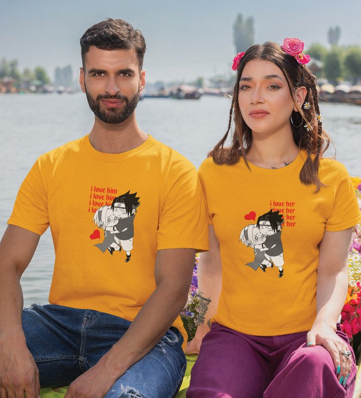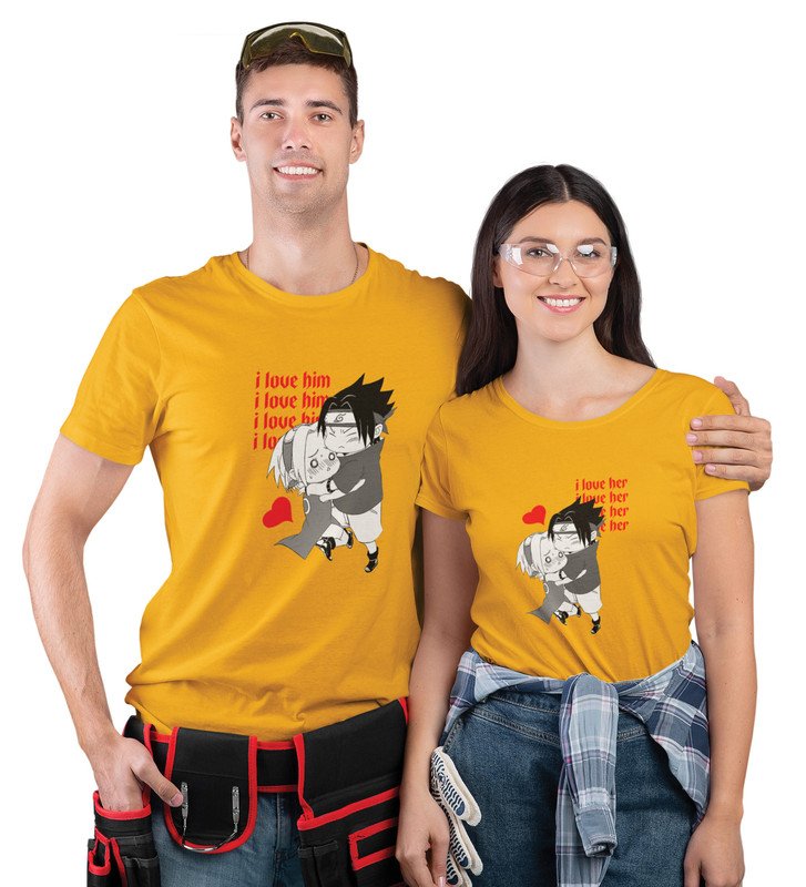 I Love Her/I Love Him (Yellow) T-shirts Printed For Couples