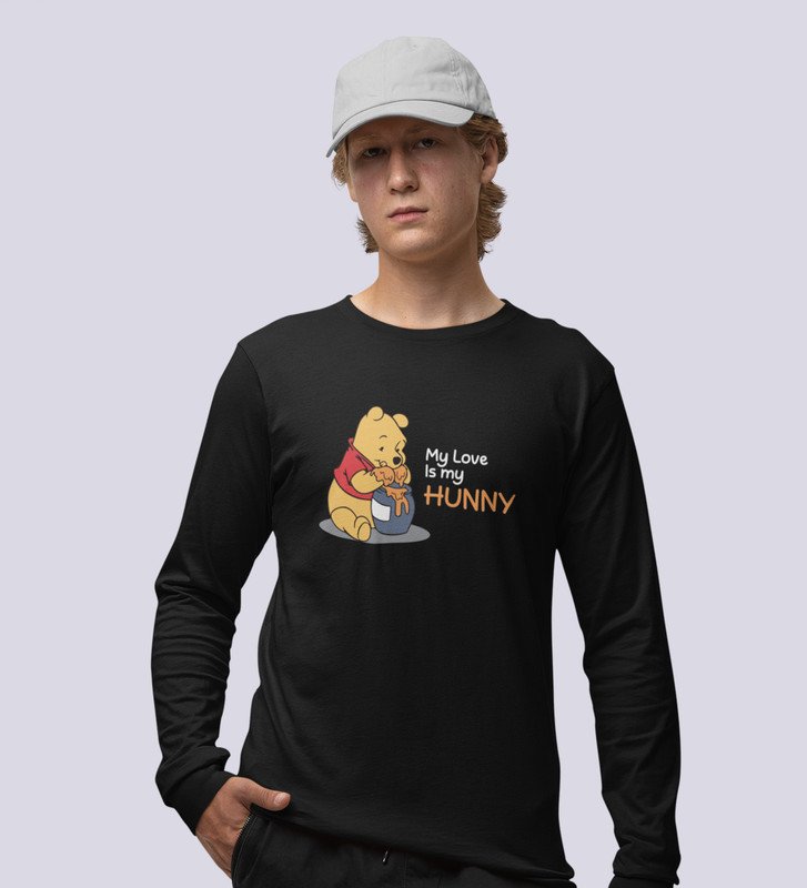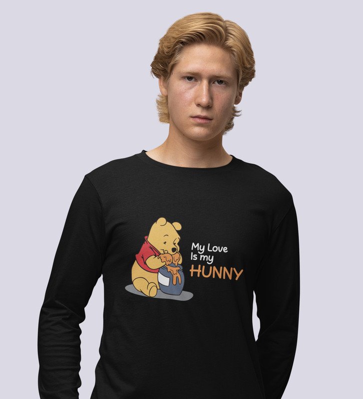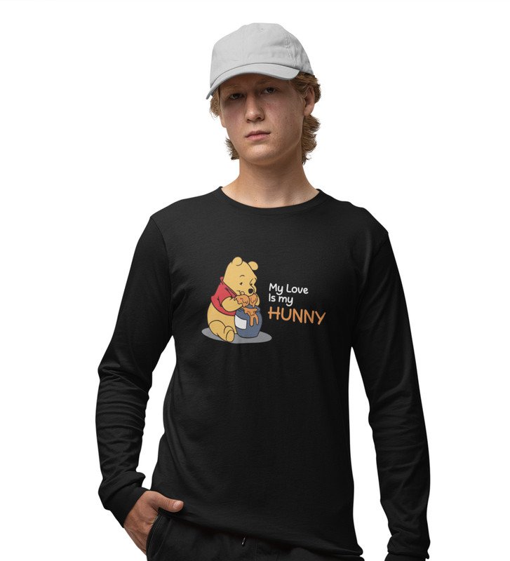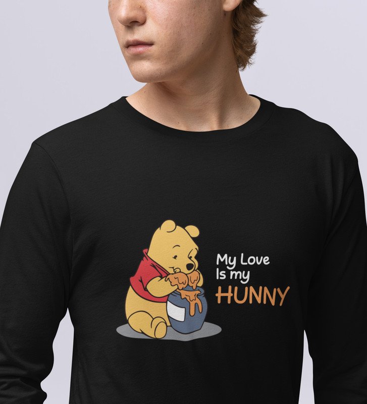 I Love Honey: Printed (black) Full Sleeve T-Shirt For Singles