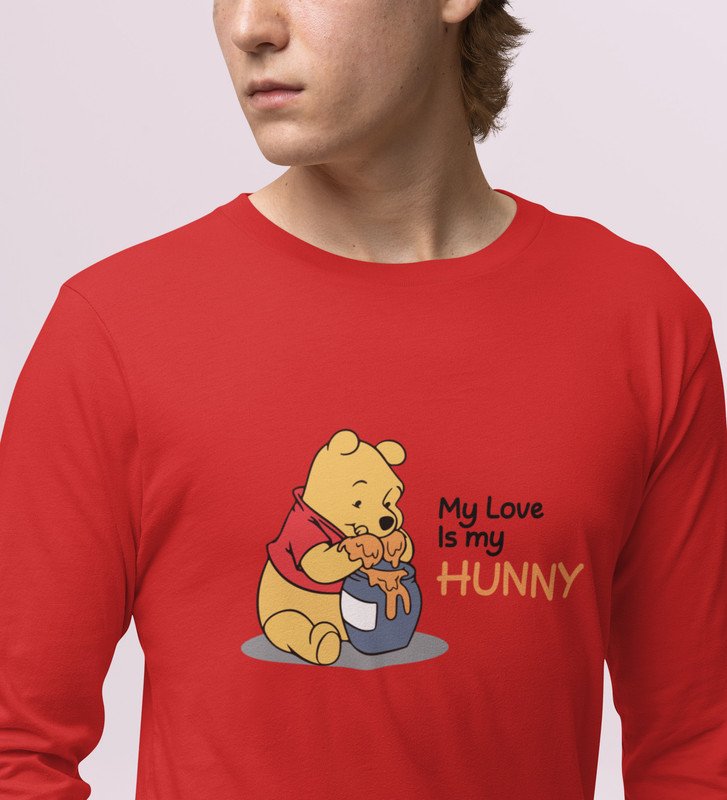 I Love Honey: Printed (red) Full Sleeve T-Shirt For Singles
