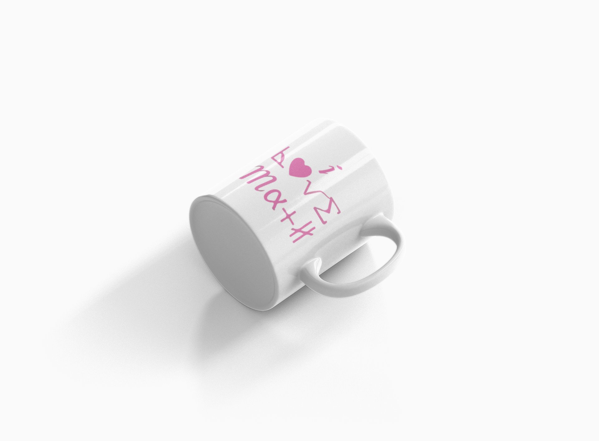 I love math (BG Pink)- formula themed printed ceramic white coffee and tea mugs/ cups for maths lovers