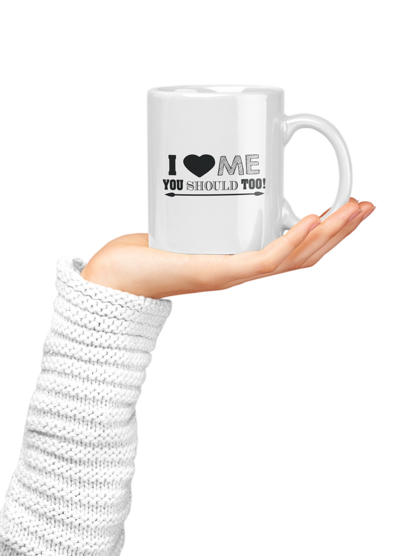 I Love me You Should too- family themed printed ceramic white coffee and tea mugs/ cups