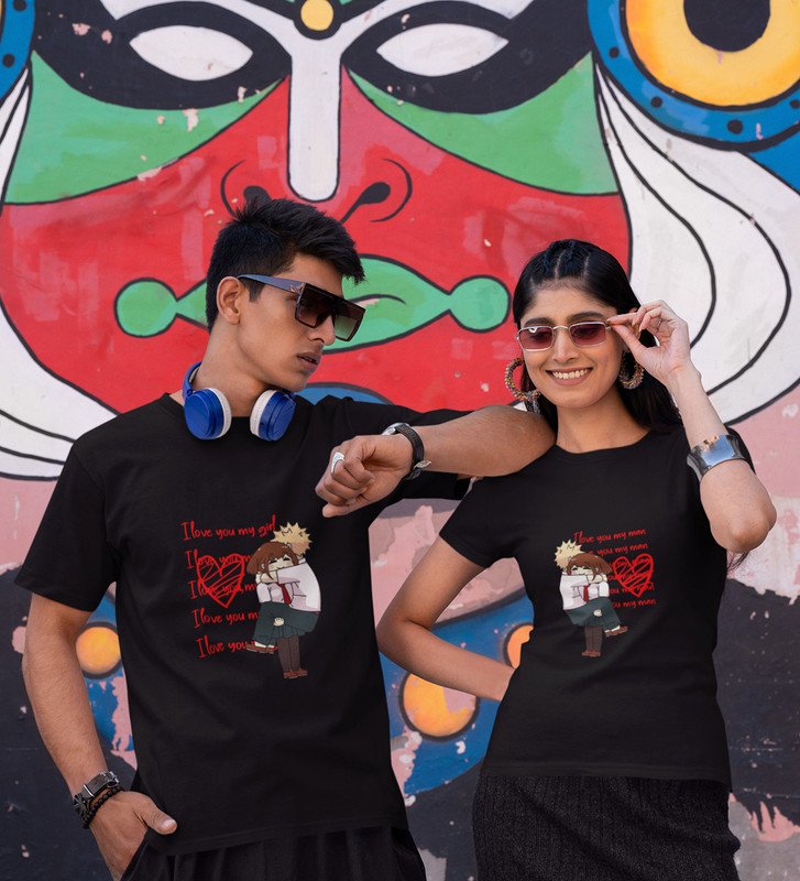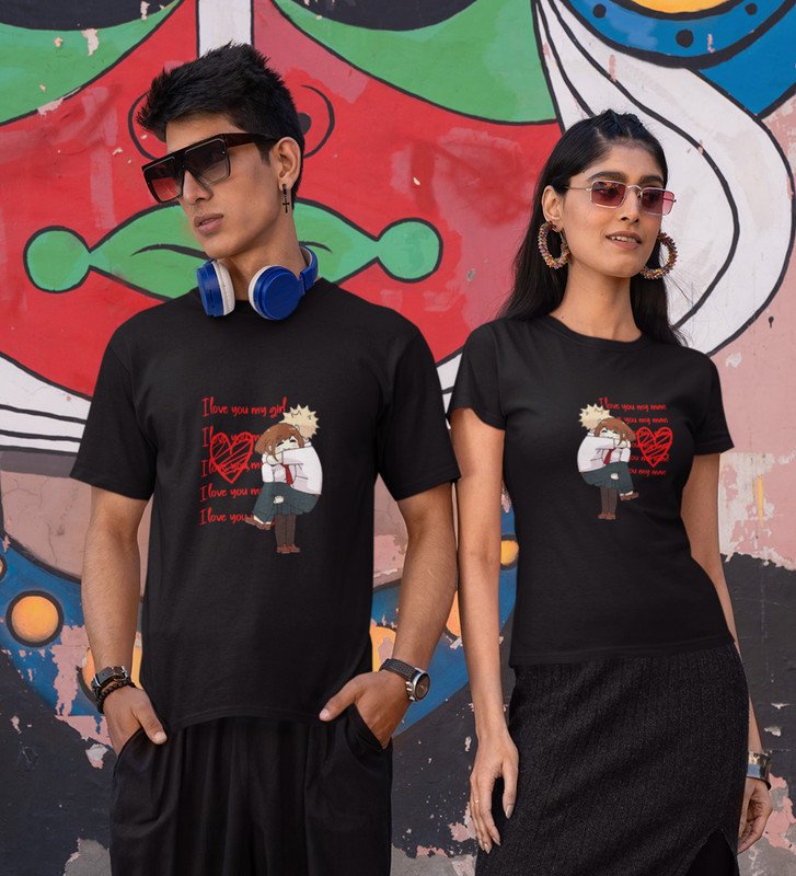 I Love You Man/I Love You My Girl Printed Couple (Black) T-shirts