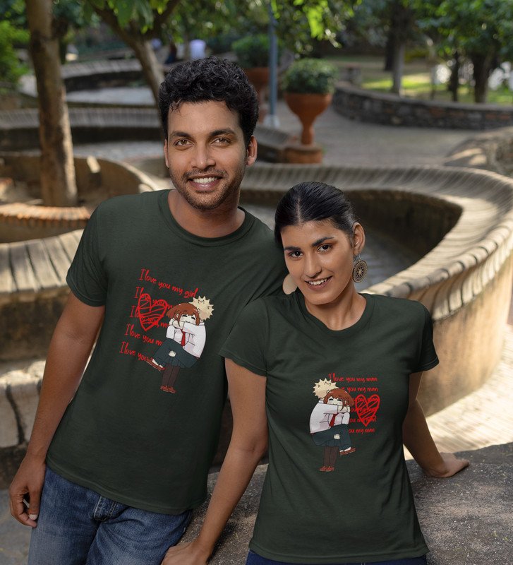 I Love You Man/I Love You My Girl Printed Couple (green) T-shirts