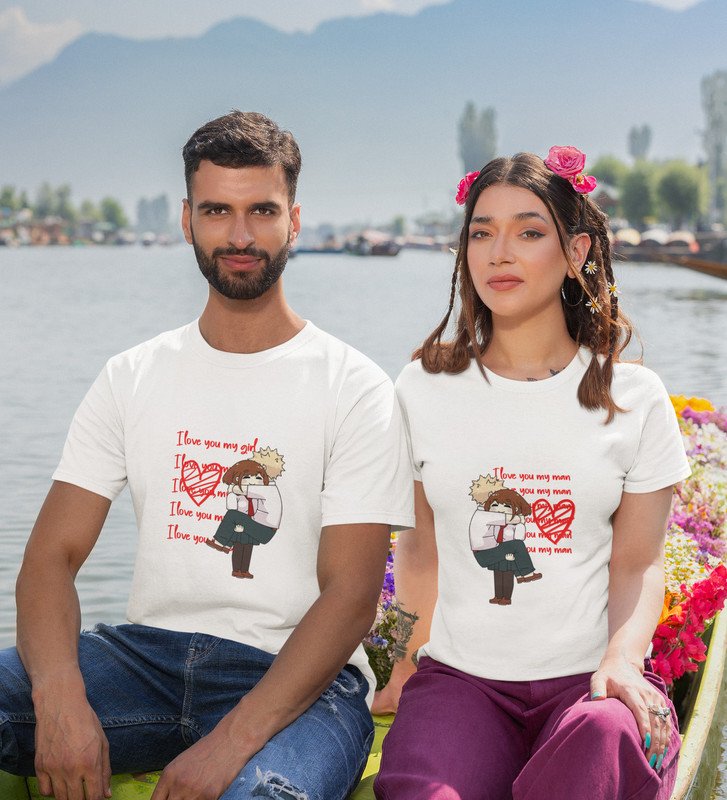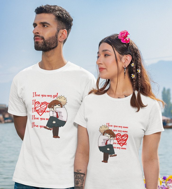 I Love You Man/I Love You My Girl Printed Couple (White) T-shirts