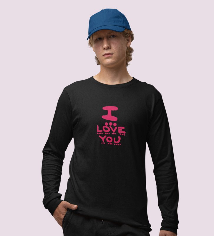 I Love You: Sublimation Printed (black) Full Sleeve T-Shirt For Singles