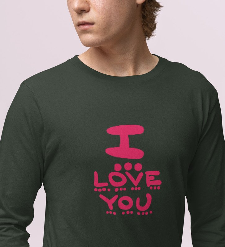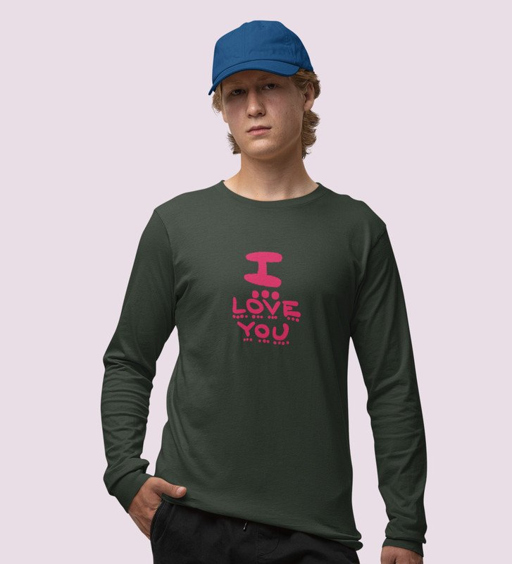 I Love You: Sublimation Printed (green) Full Sleeve T-Shirt For Singles