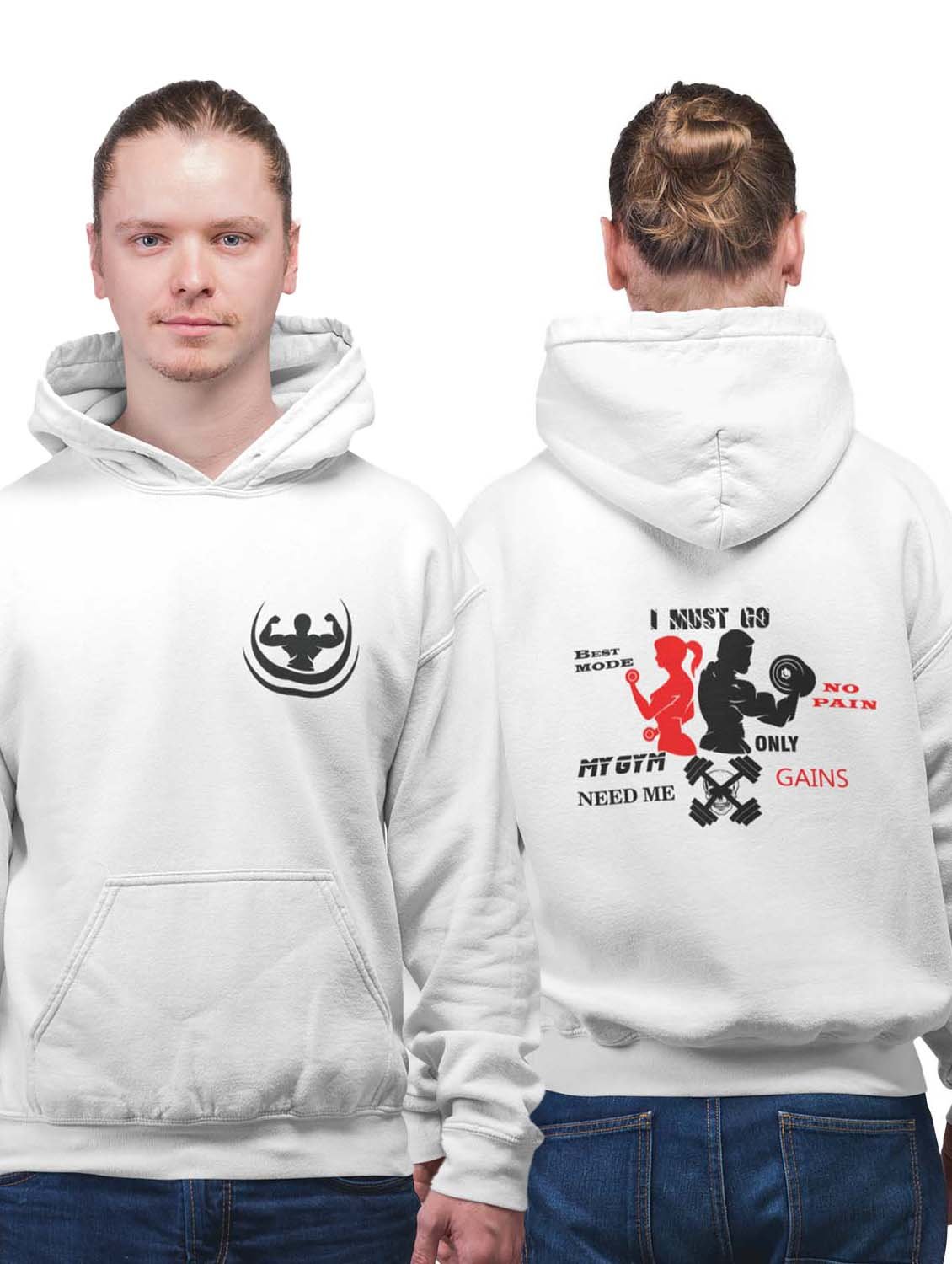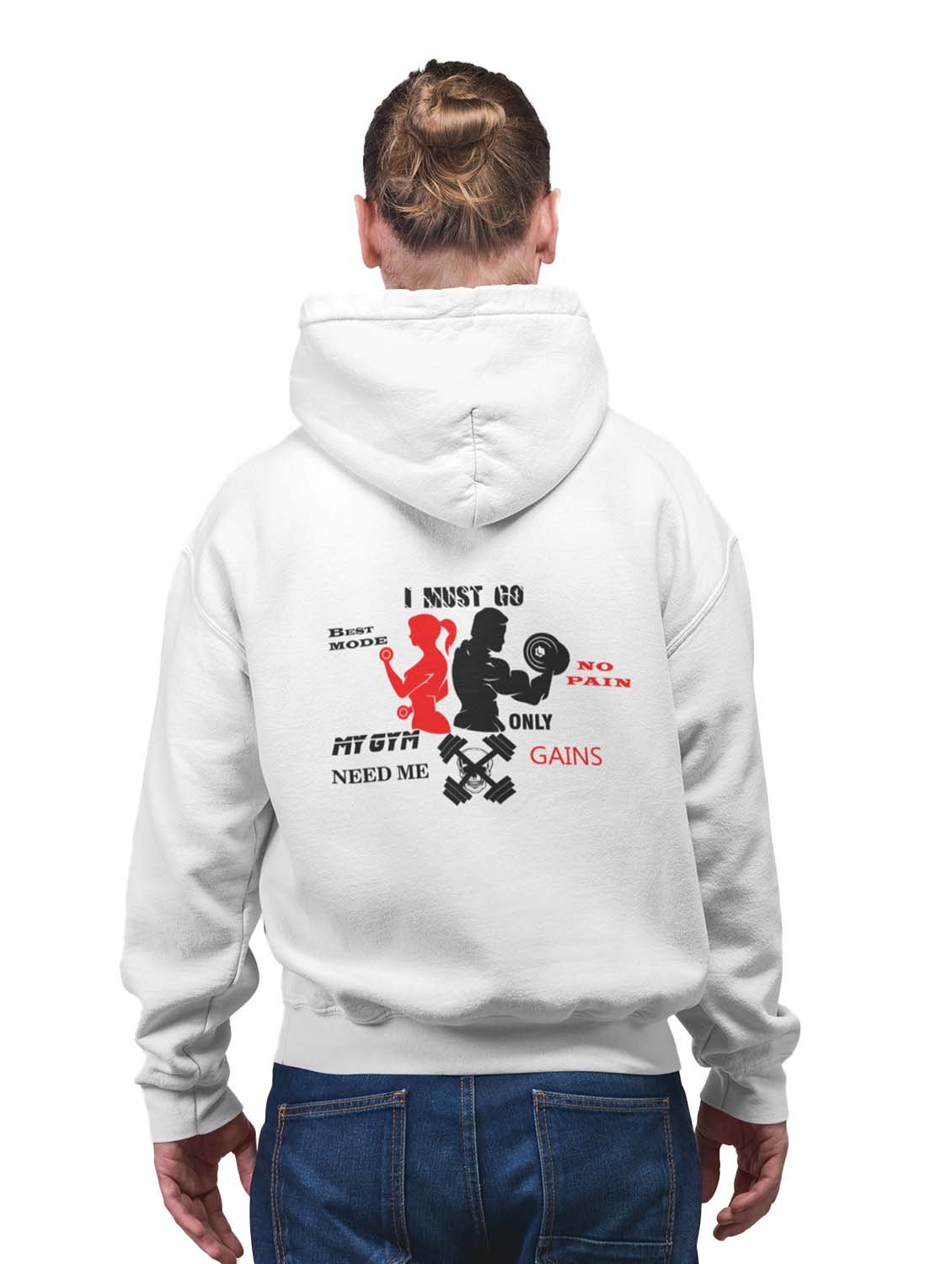 I Must Go Beat Mode, No Pain, Only Gain printed artswear white hoodies for winter casual wear specially for Men
