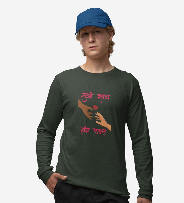 I Only Need You: Printed (green) Full Sleeve T-Shirt For Singles