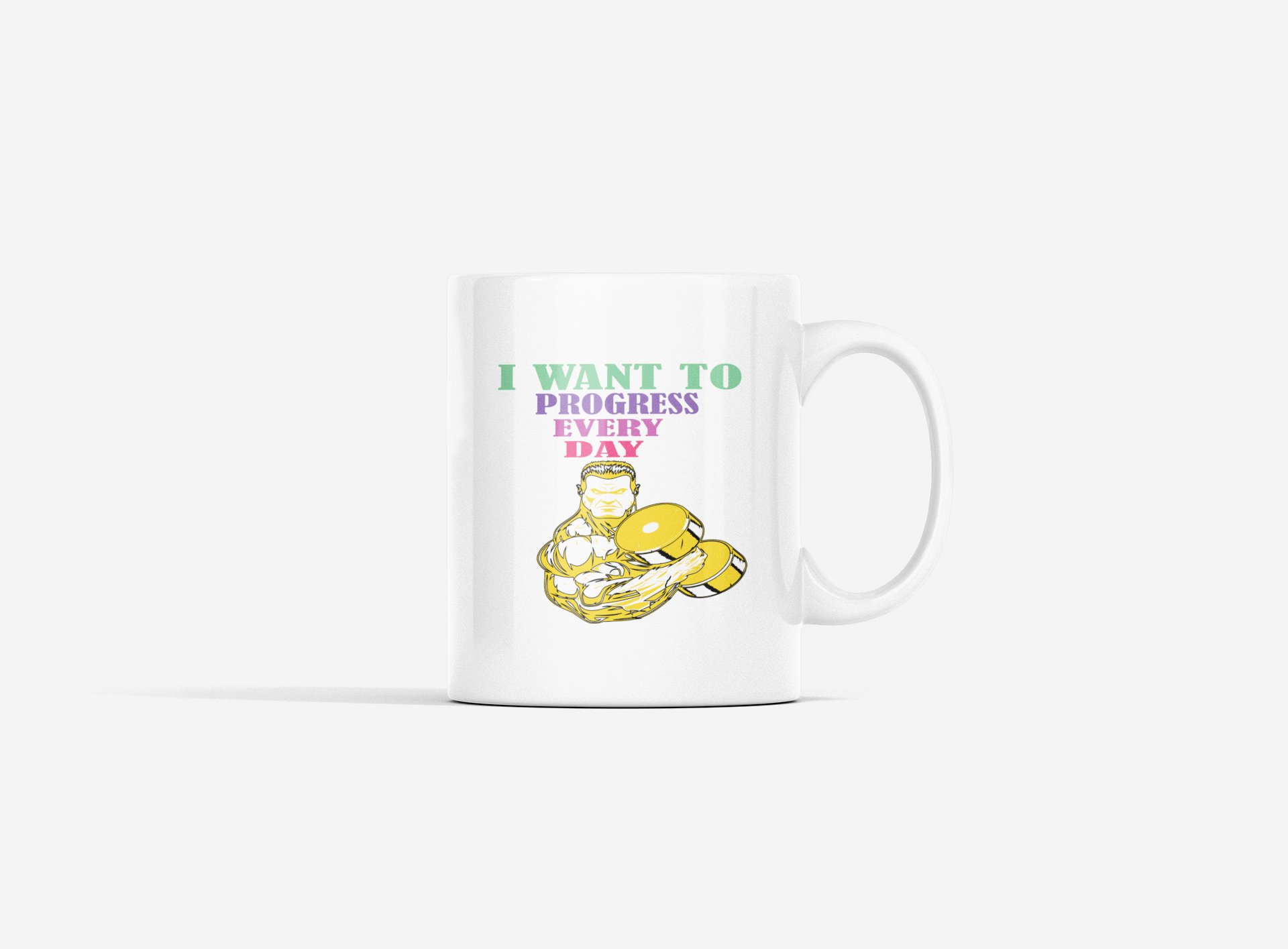 I Want to Progress Everyday, (BG Yellow) - gym themed printed ceramic white coffee and tea mugs/ cups for gym lovers
