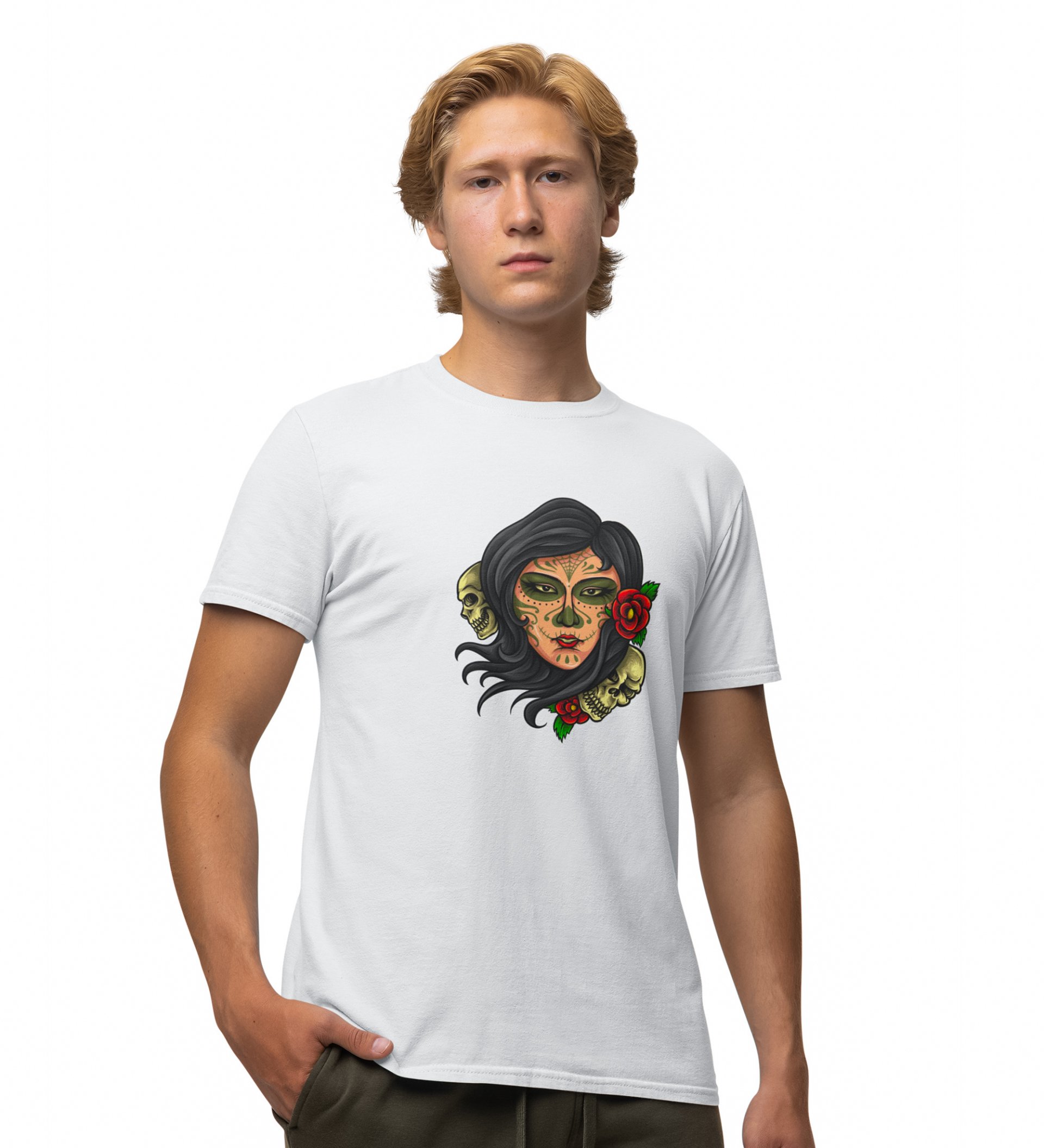 Tattoo Tshirt White Round Neck Cotton Half Sleeved Men's T-Shirt with Printed Graphics
