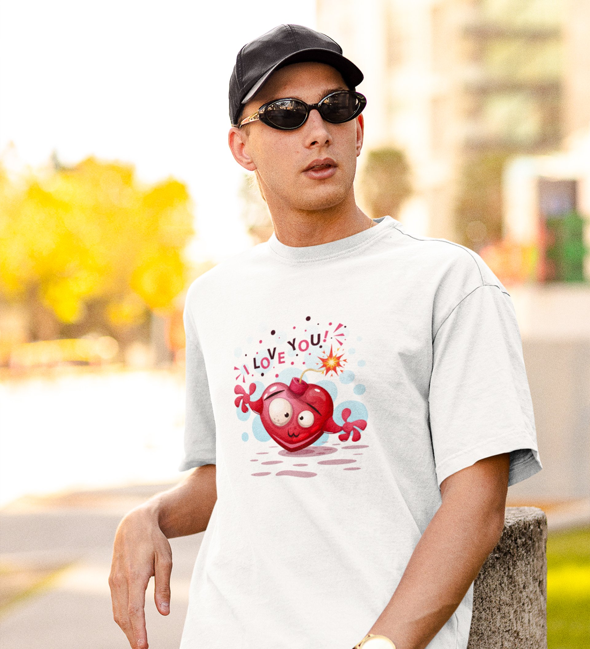 Bombastic Heart White Round Neck Cotton Half Sleeved Men's T-Shirt with Printed Graphics